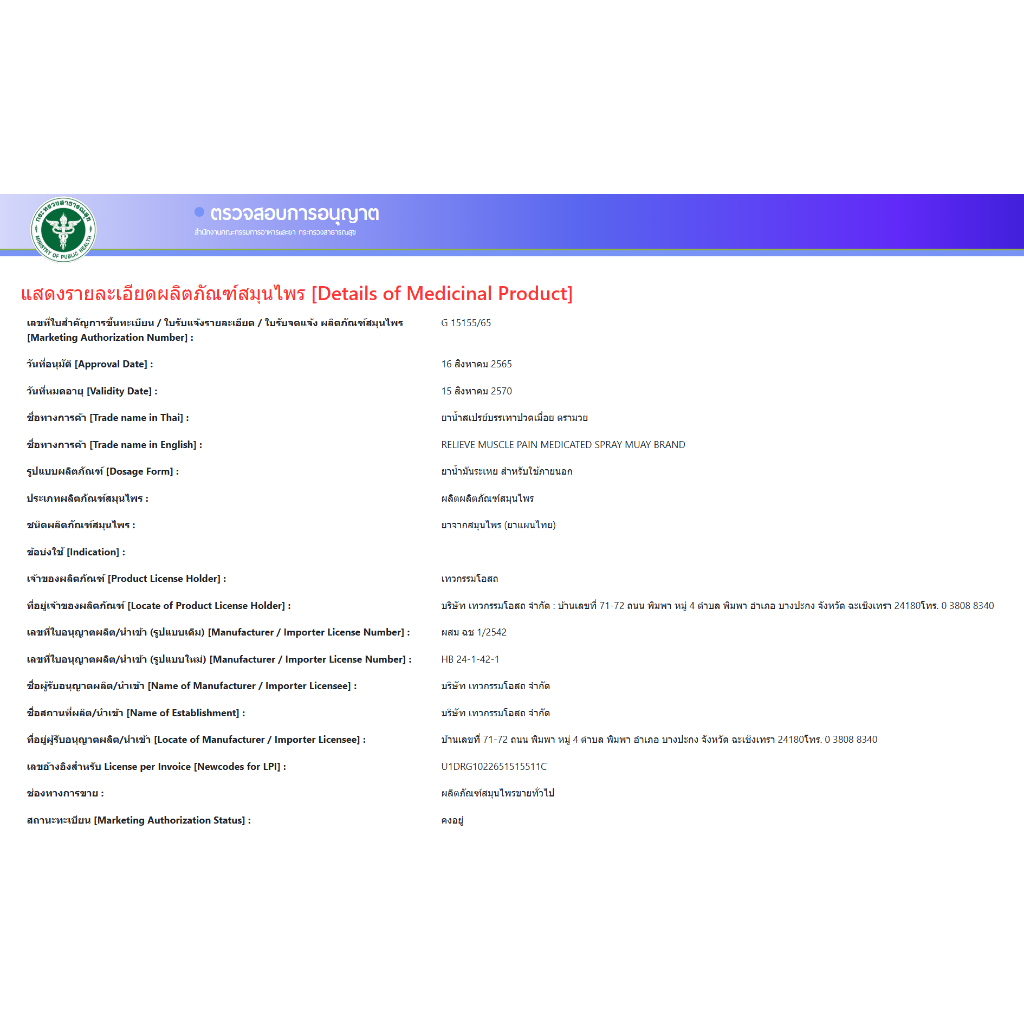 น้ำมันมวย มวยครีม มวย MUAY ยาน้ำสเปรย์ บรรเทาอาการปวดเมื่อย