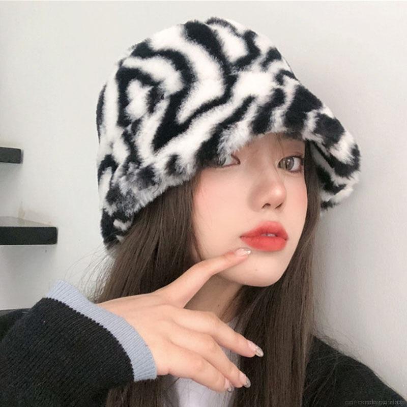 หมวกบักเก็ต ผ้าขนสัตว์ ลายเสือดาว ม้าลาย เสือดาว ให้ความอบอุ่น สีดํา สีขาว แฟชั่นฤดูหนาว สไตล์วินเทจ สําหรับผู้ชาย และผู้หญิง YUE