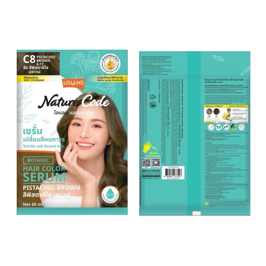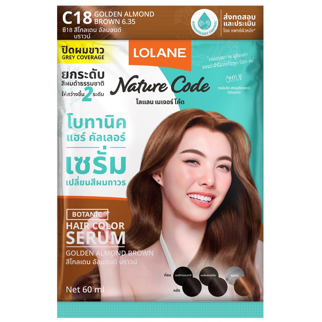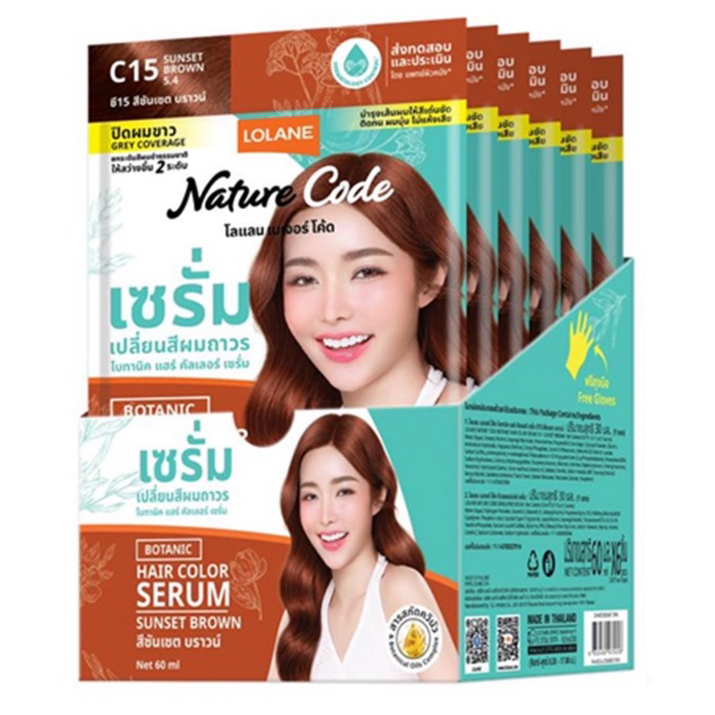 ขายยกกล่อง 6 ซอง #Lolane Nature Code Botanic Hair Color 18สี เซรั่มเปลี่ยนสีผมถาวร ซอง 30+30 ml.