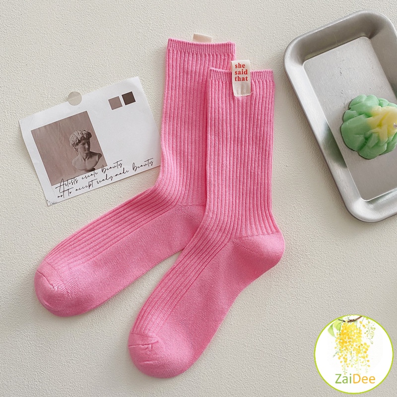 ถุงเท้ากีฬา ข้อยาว ผ้าฝ้าย ถุงเท้าข้อกลาง ถุงเท้าหลากสีสัน แฟชั่นฤดูใบไม้ร่วง women's socks