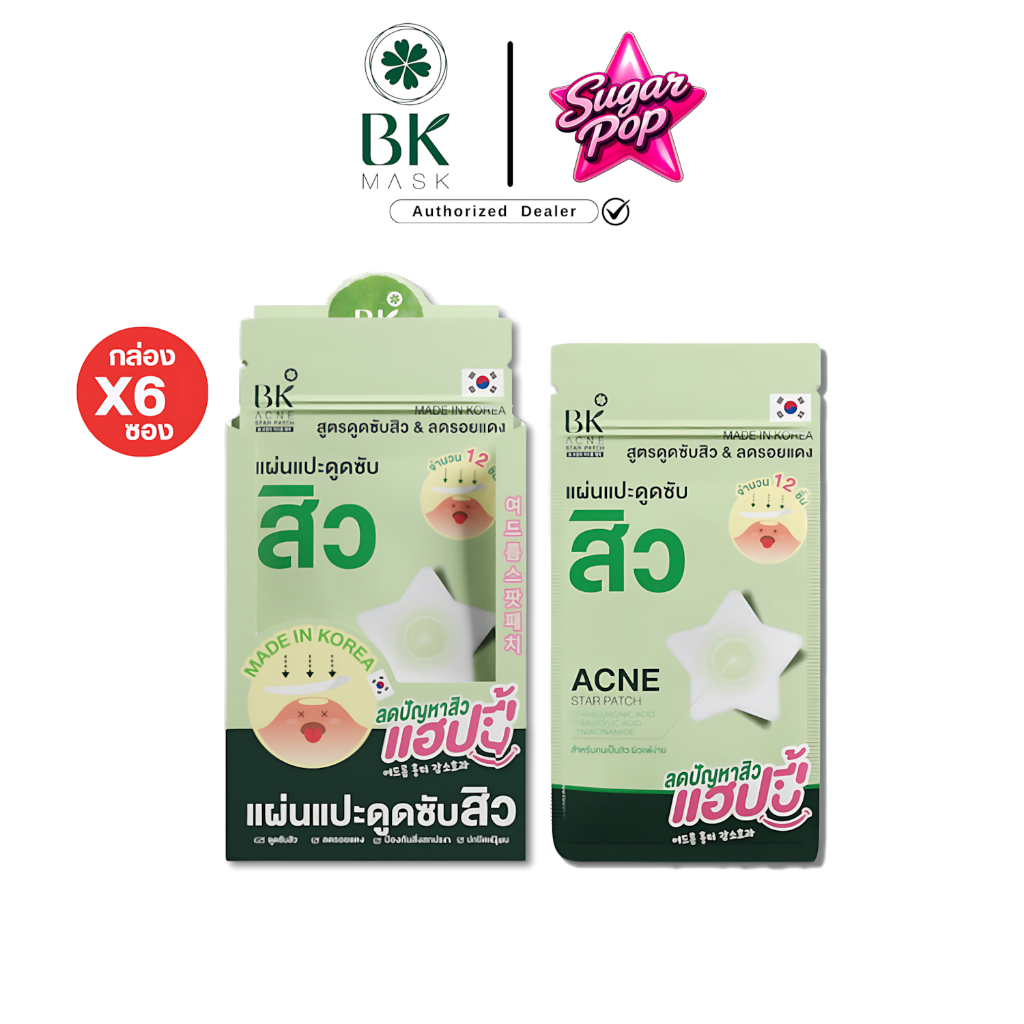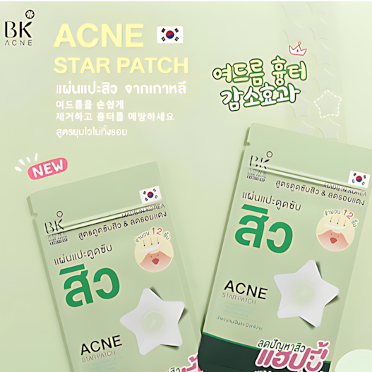 (6x12ชิ้น) BK ACNE STAR PATCH บีเค แอคเน่ เเผ่นเเปะดูดซับสิว สำหรับคนเป็นสิว ผิวเเพ้ง่าย [1334]