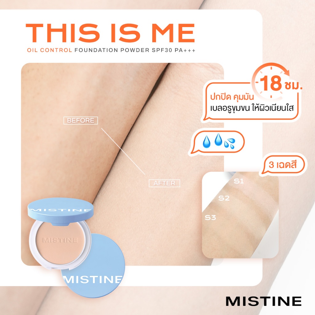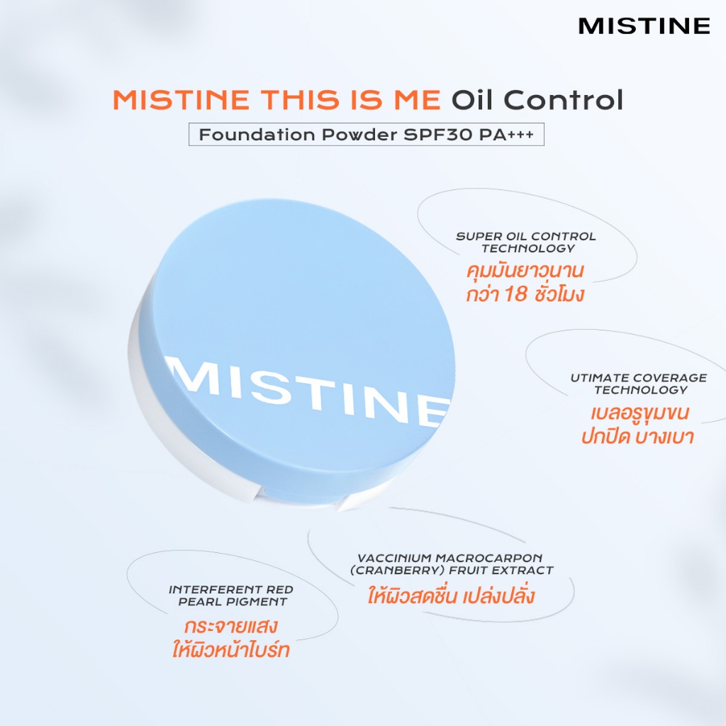(ซื้อ2ตลับ ฟรีกระจกพกพา) มิสทีนแป้งพัฟดิสอิสมี ออยคอนโทรลฟาวเดชั่นพาวเดอร์7g.