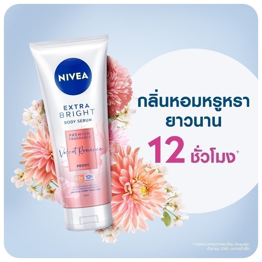นีเวีย เอ็กซ์ตร้า ไบรท์ บอดี้ เซรั่ม พรีเมียม ฟราแกรนซ์ เวลเว็ท โรแมนซ์ พีโอนี 180มล. 2 ชิ้น NIVEA