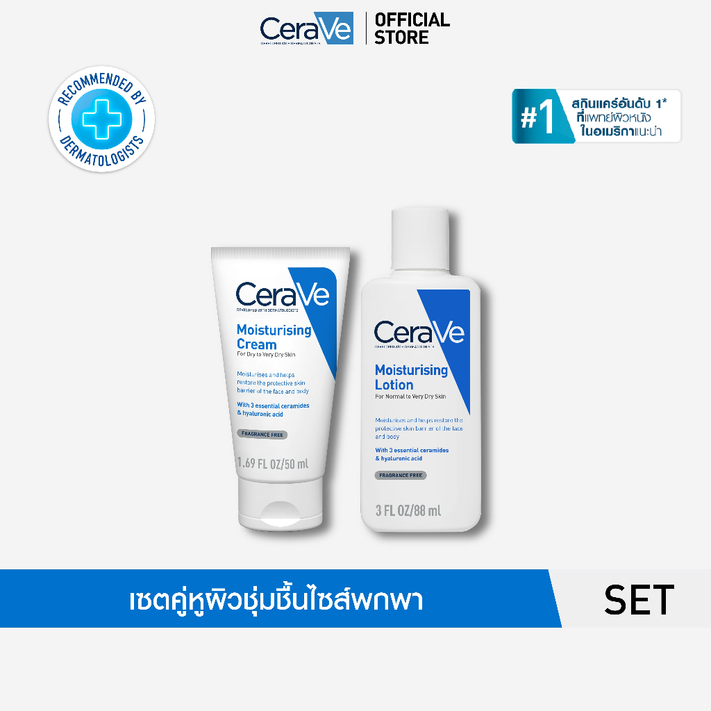 เซตครีมกู้ผิวแห้งขุย Moisturising Cream 50g + Moisturising Lotion 88ml