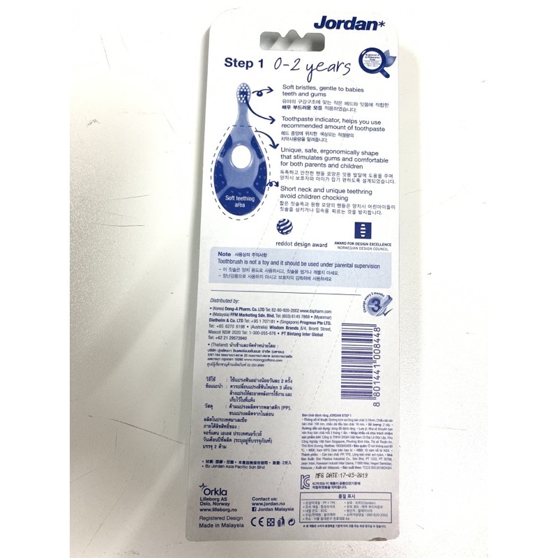 Jordan แปรงสีฟันเด็ก จอร์แดน สเต็ป 1 (0-2 ปี) แพ็คคู่