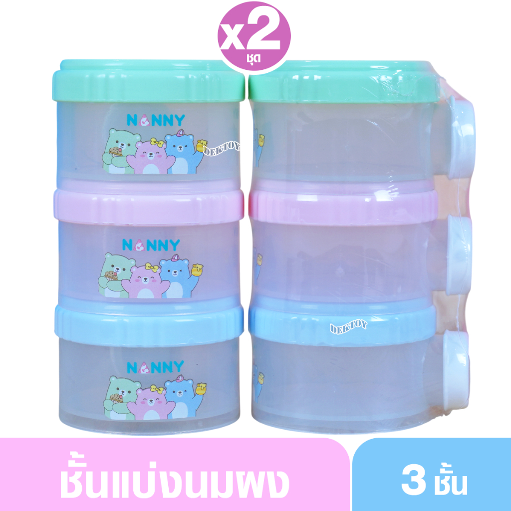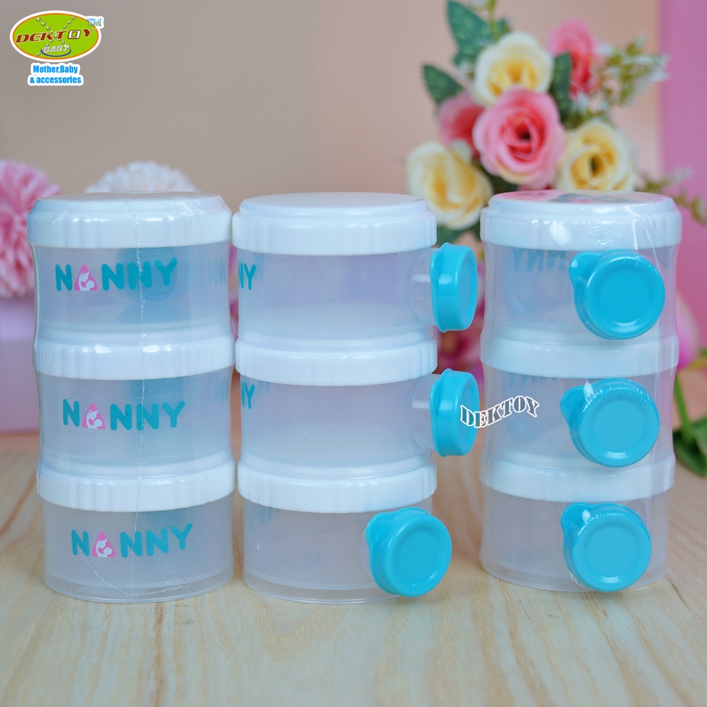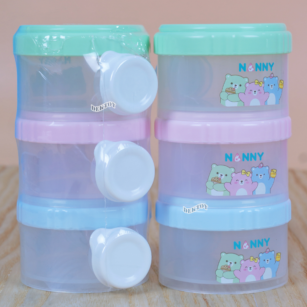 Nanny ชั้นแบ่งนมเปิดข้าง ที่เก็บนมผง ขวดเก็บนมผงแบบพกพา 3 ชั้น ถอดแยกกันได้ ความจุรวม 24 ออนซ์