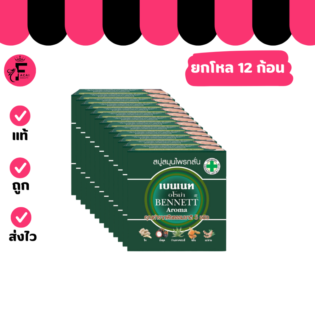 (แบบโหล 12 ก้อน) BENNETT Aroma สบู่เบนเนทอโรม่า ( สบู่สมุนไพรกลั่น ) (ปริมาณ 160 กรัม)