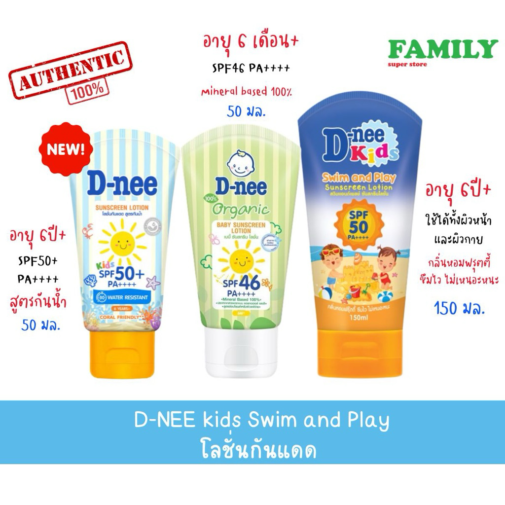 D-nee Kids Sunscreen Lotion ดีนี่ โลชั่นกันแดด SPF 46/50+ ขนาด 50/150มล.