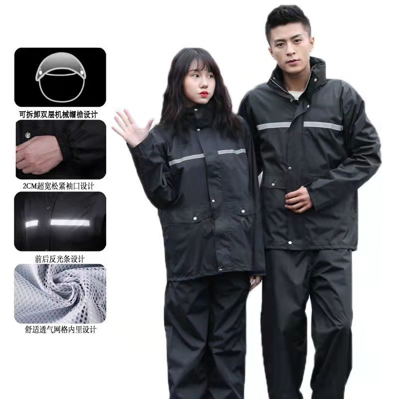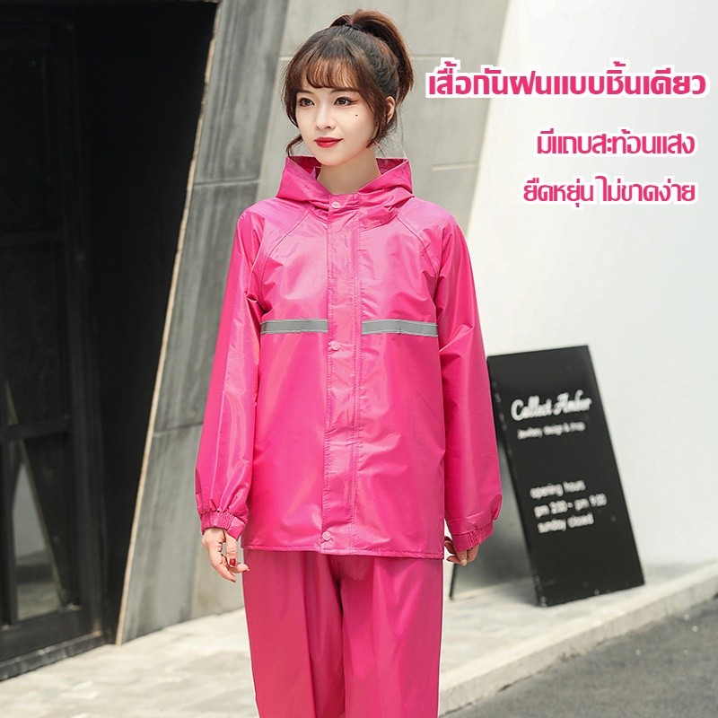 ชุดกันฝนผู้ใหญ่ กันน้ำ มีแถบสะท้อนแสง รุ่นหมวกฮู้ด มีให้เลือกหลายสีและไซส์ L-XXL