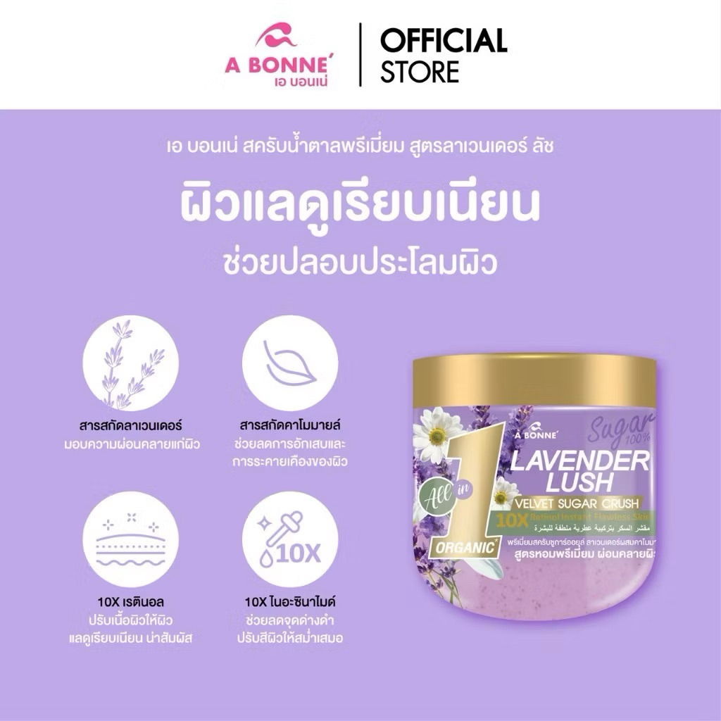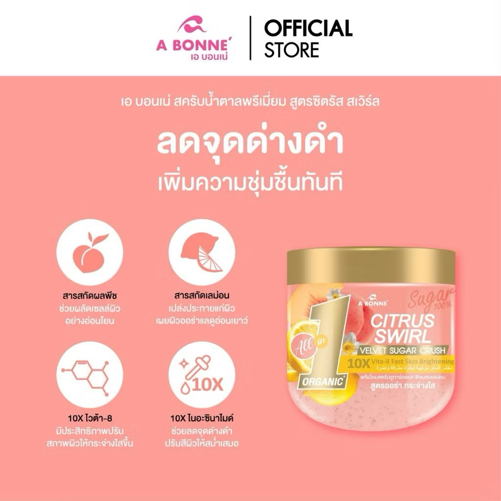 ส่งฟรี/มีไลฟ์ (ชิ้น)เอ บอนเน่ พรีเมี่ยมสครับ ชูก้าร์ออยล์ 600 g. A Bonne' Sugar Scrub ขัดผิวขาว ผิวนุ่ม ชุ่มชื้น 24 ชม.