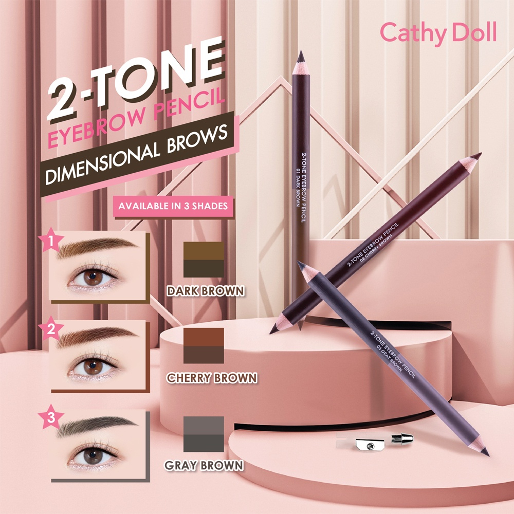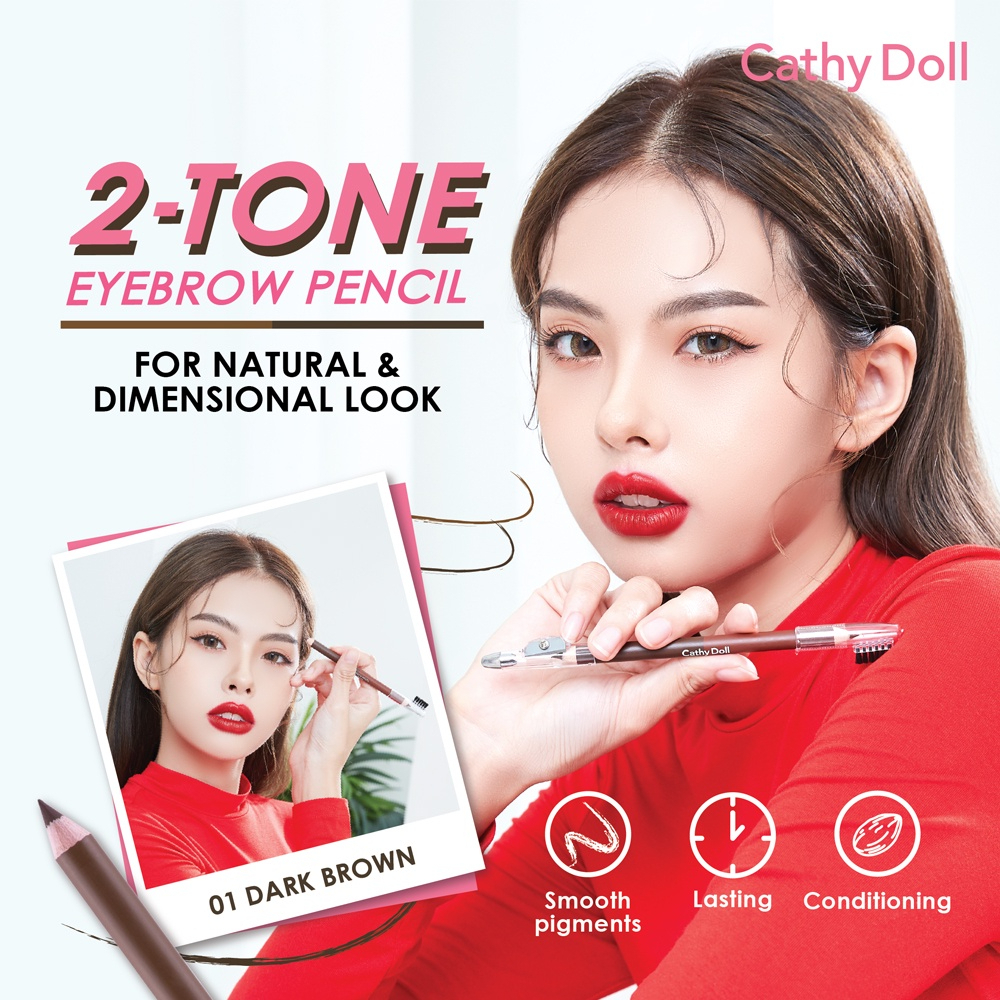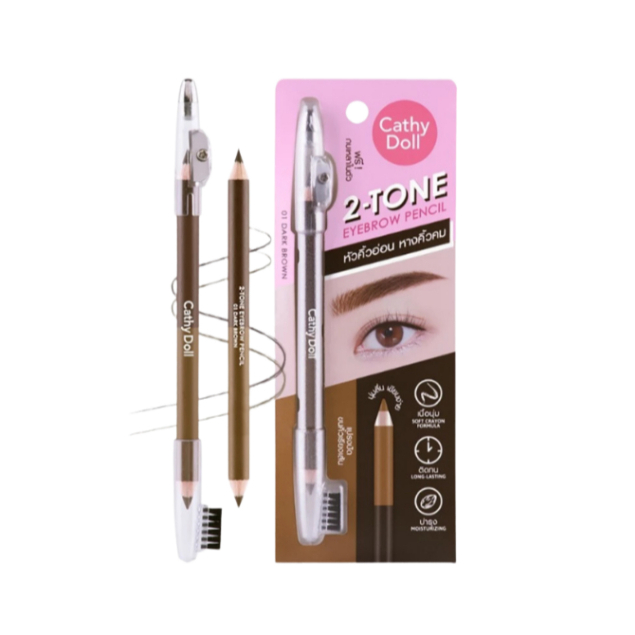 (1ชิ้น) Cathy Doll Two-Tone Eyebrow Pencil 1g+1g ดินสอเขียนคิ้ว 2เฉดสี พร้อมกบเหลาและแปรงในแท่งเดียว