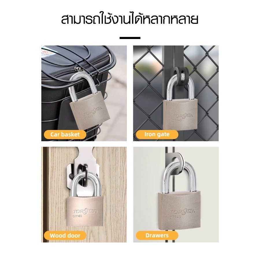 GlobalHouse TORSTEN กุญแจคล้องเหล็กระบบสปริง (ไส้ทองเหลือง) 40มม รุ่น GPP-340 ห่วงสั้น สีเงิน สินค้าของแท้คุณภาพดี