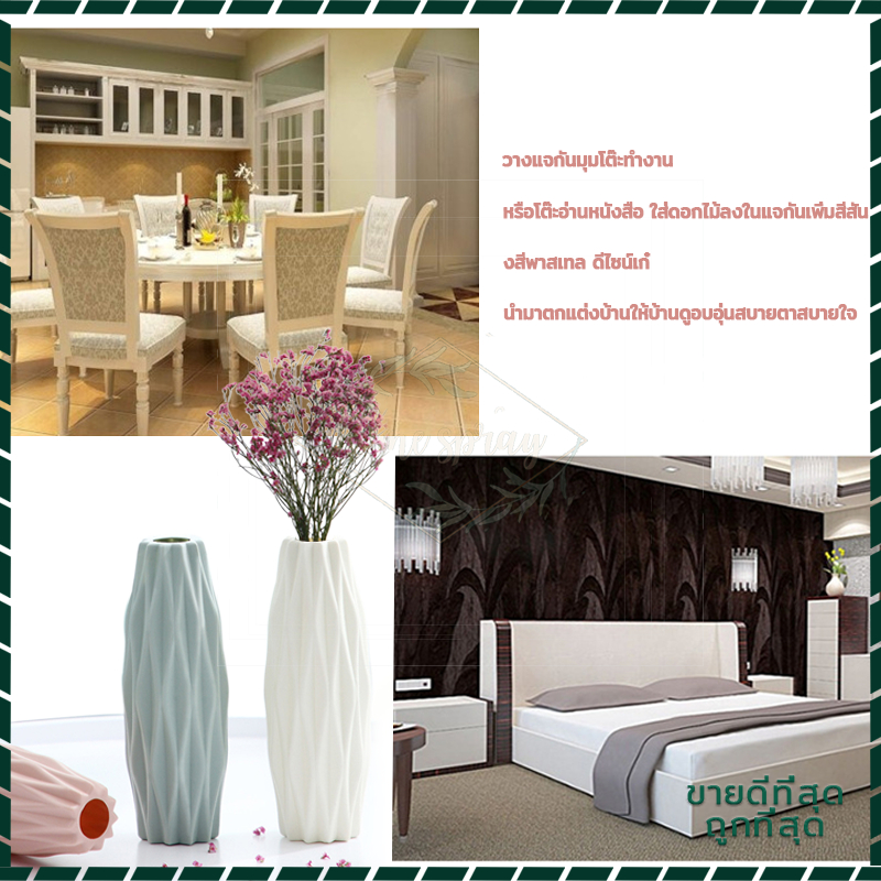 แจกันพลาสติก สวยๆ ใส่ดอกไม้ ทรงสูง สีพาสเทล ของประดับตก แต่งบ้าน ขนาด 7.5*7.5*21 ซม