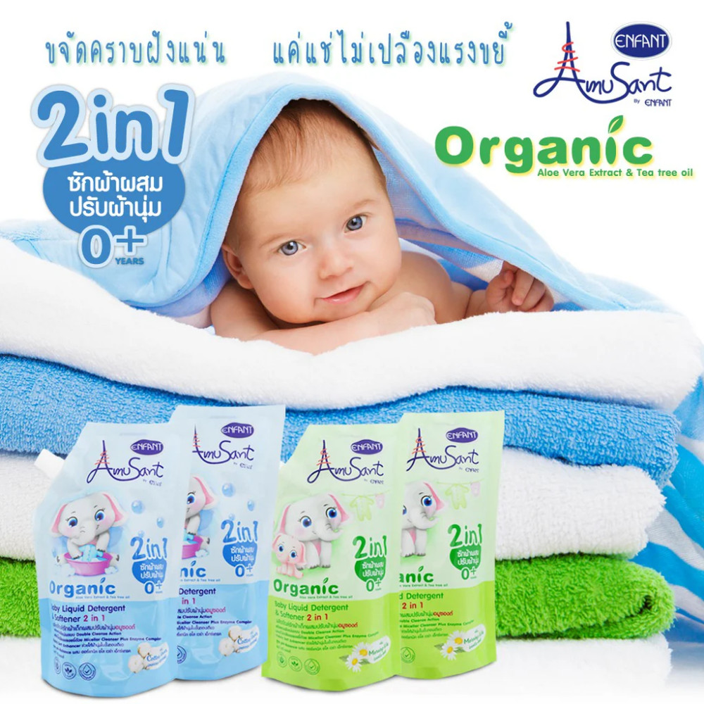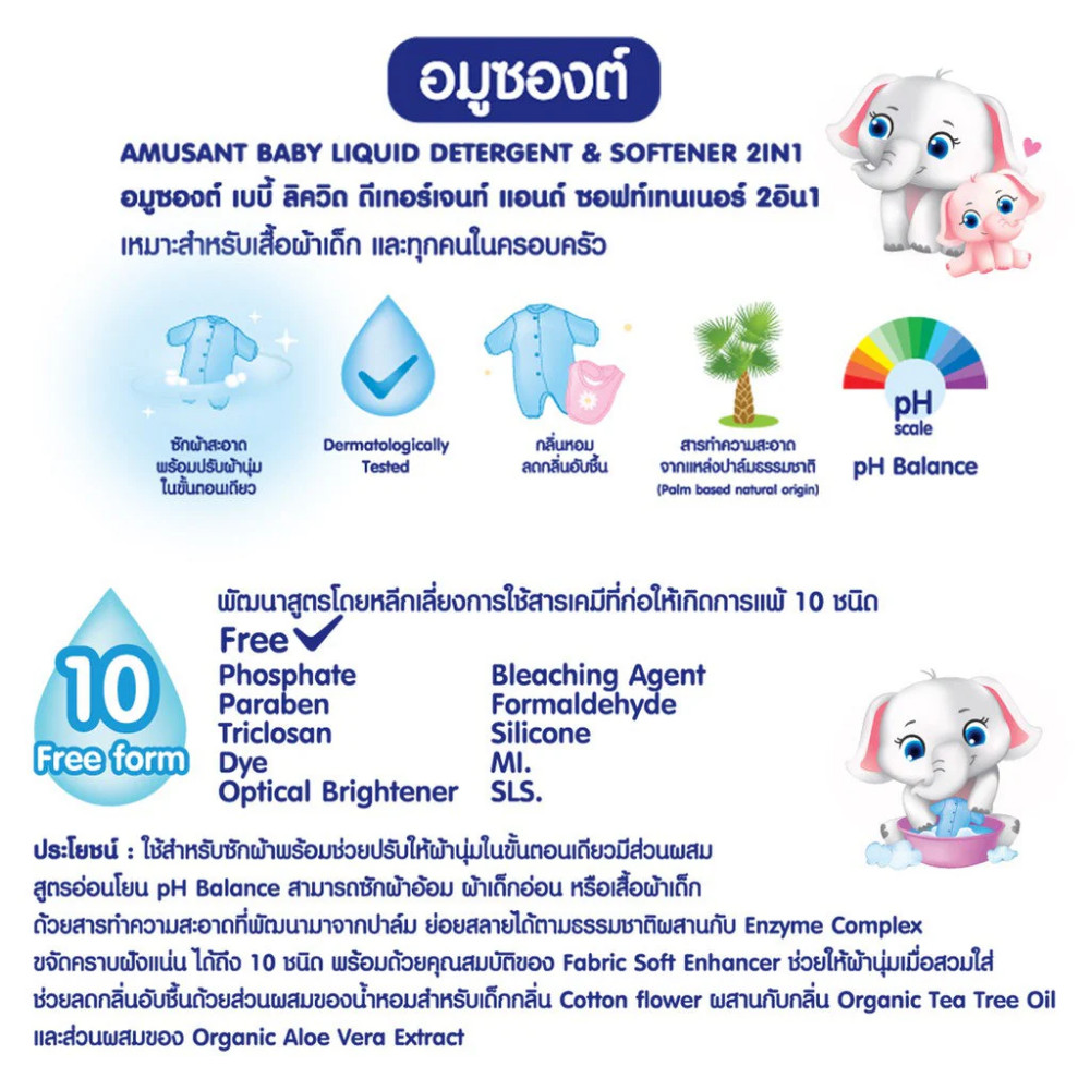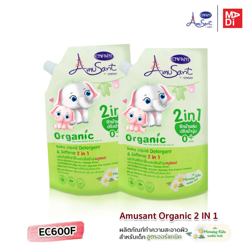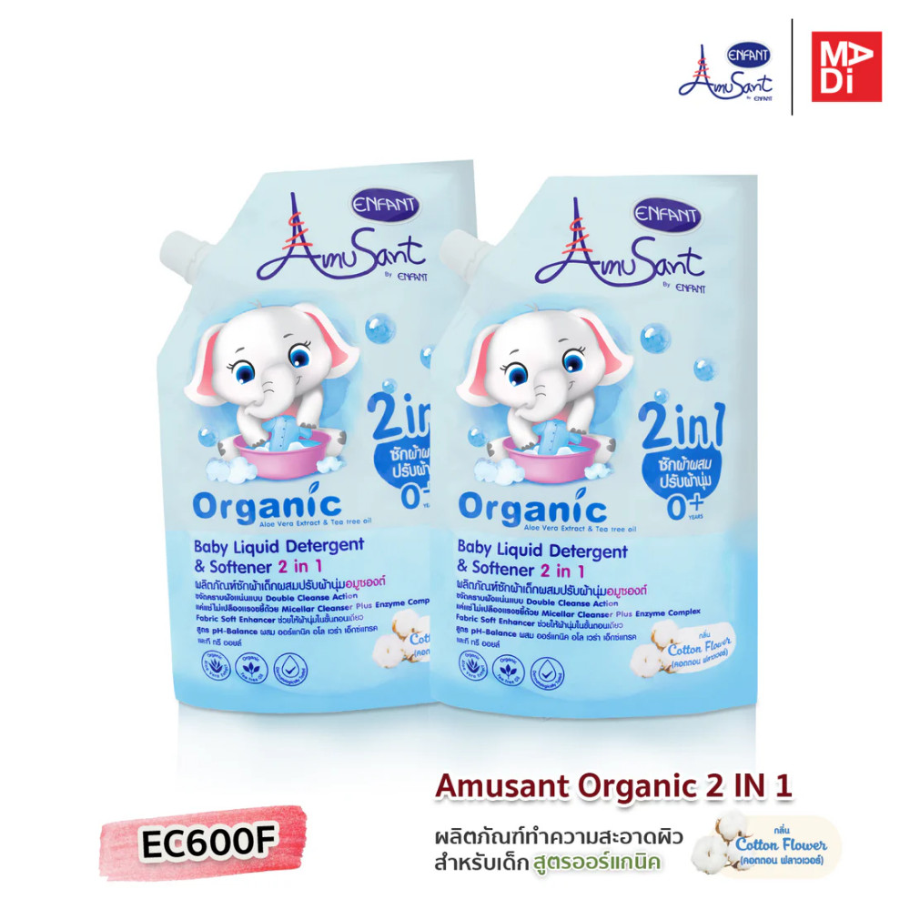 AMUSANT Baby น้ำยาซักผ้าสำหรับเด็ก ผสมปรับผ้านุ่ม 2in1 ขนาด 600 ml. สูตรออแกนิค byกำตังค์
