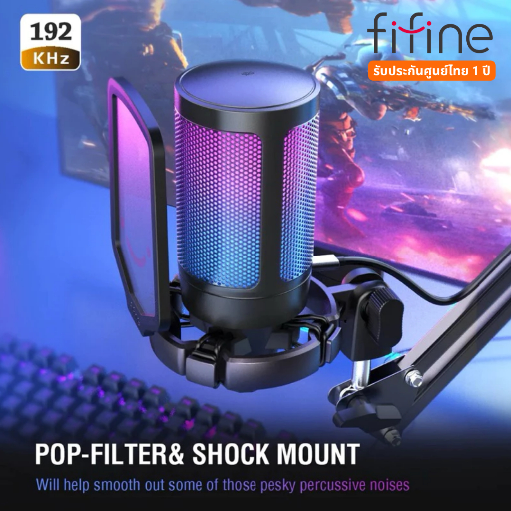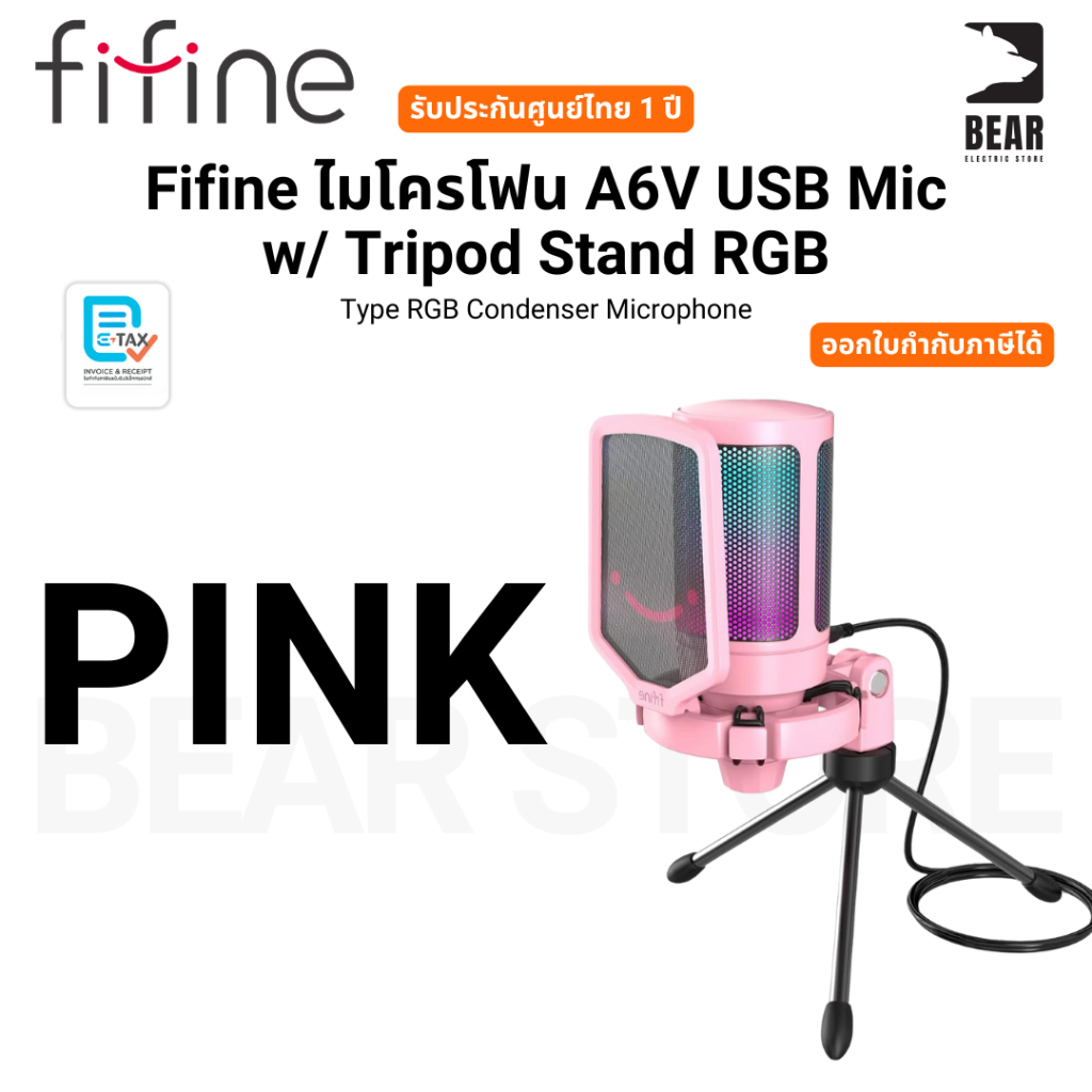 Fifine ไมโครโฟน A6V USB Mic w/ Tripod Stand RGB Type RGB Condenser Microphone รับประกันศูนย์ไทย 1 ปี