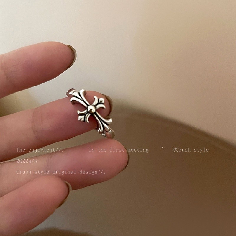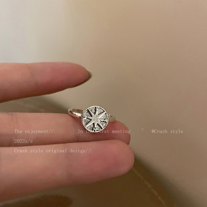 แฟชั่นผู้หญิงเครื่องประดับ Retro Alloy Silver Cross Star (เส้นผ่าศูนย์กลางประมาณ 1.7 ซม.)Finger Ring