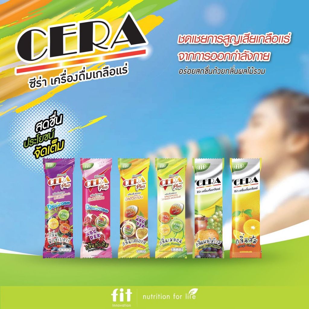 Fit Cera Plus ฟิต ซีร่า [10 ซอง][มีให้เลือก 4 กลิ่น] เครื่องดื่มเกลือแร่ ผสมวิตามิน ชนิดผง สดชื่น