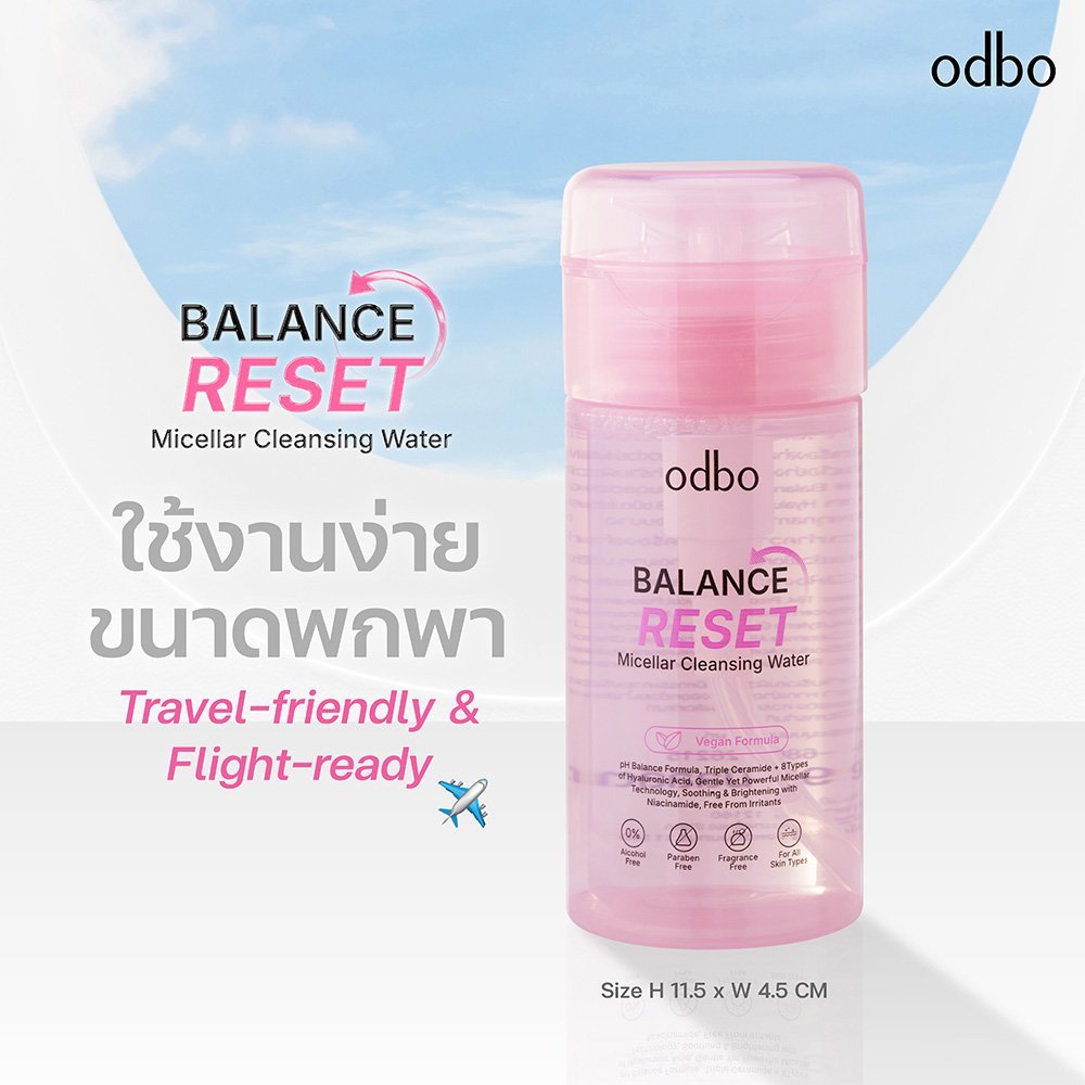 (ODR04)odbo Balance Reset Micellar Cleansing Water โอดีบีโอ บาลานซ์ รีเซ็ต ไมเซลลาร์ เคลนซิ่งเช็คเครื่องสำอางค์ 95 มล.