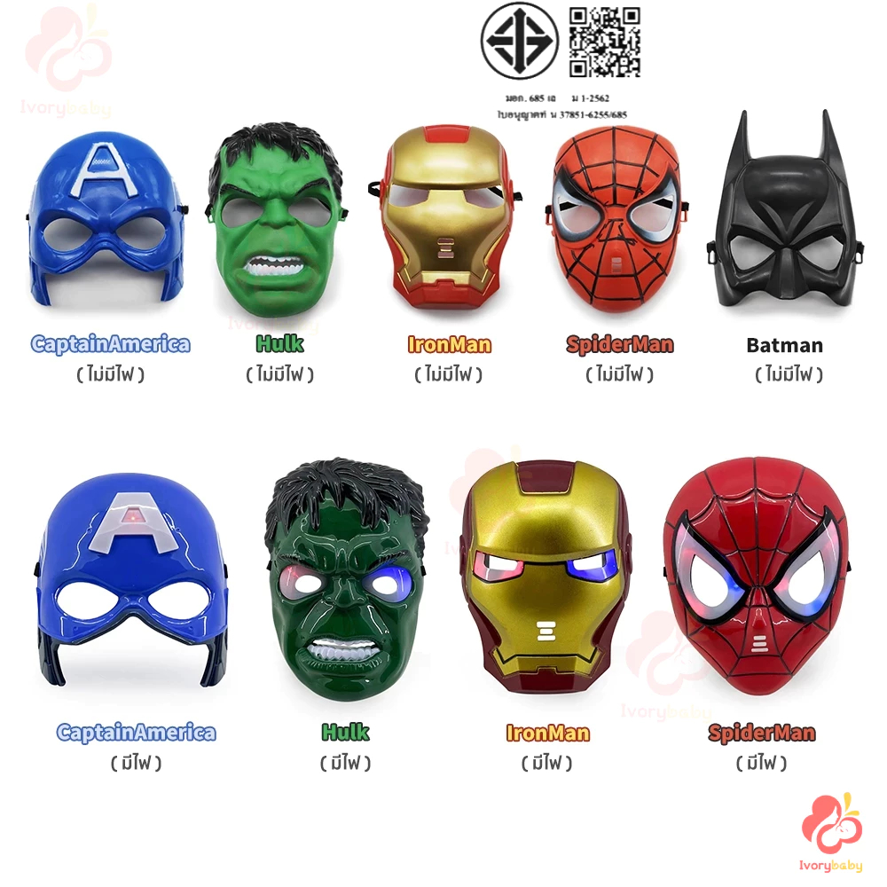 IVORYBABY อเวนเจอร์ หน้ากากซูเปอร์ฮีโร่ หน้ากากคอสเพลย์ มนุษย์แมงมุม กัปตันอเมริกา ไอรอนแมน