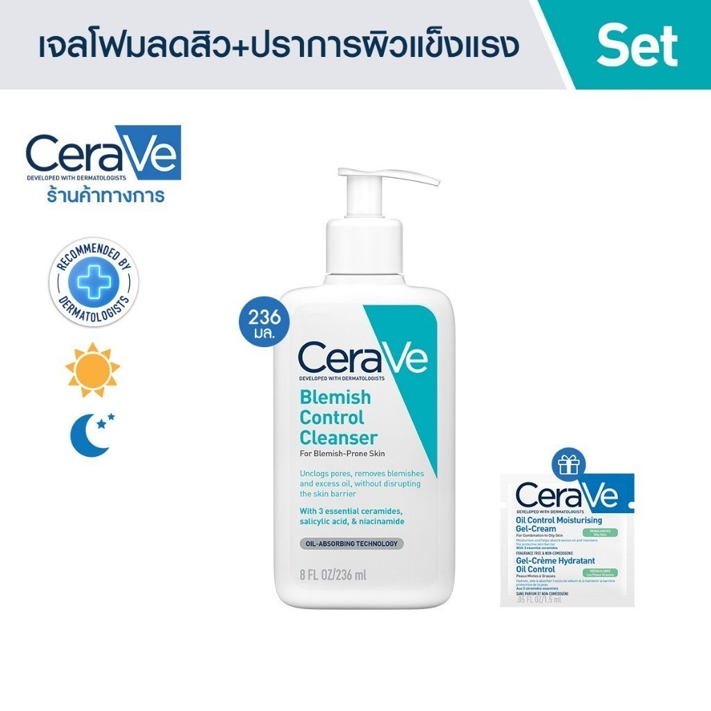 เซราวี CERAVE BLEMISH CONTROL CLEANSER เจลทำความสะอาดผิว สำหรับผิวเป็นสิว 236 มล. + ของแถม Oil Control Gel Cream 1.5ml