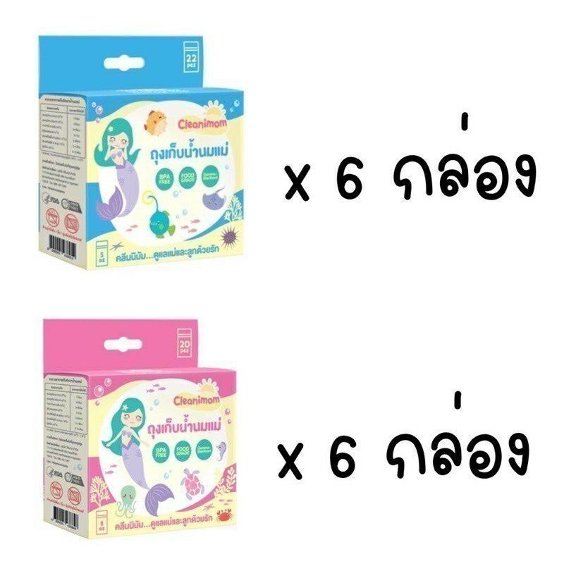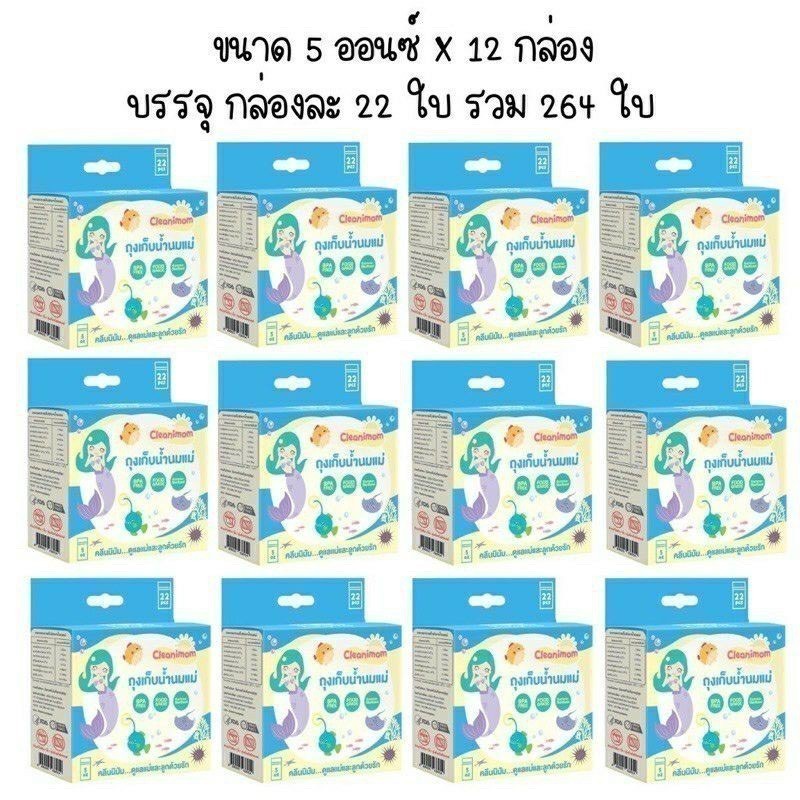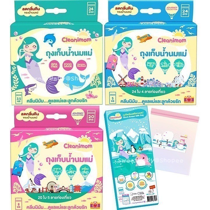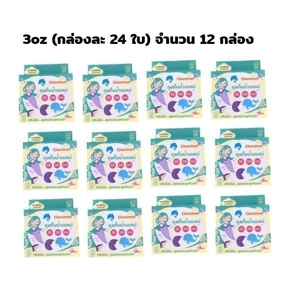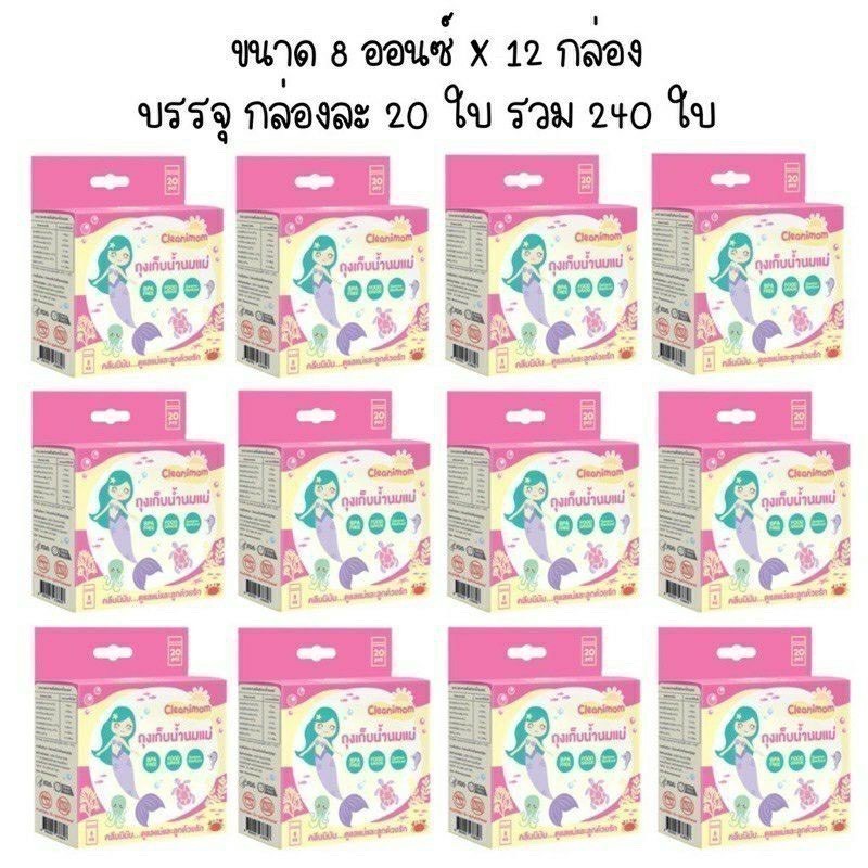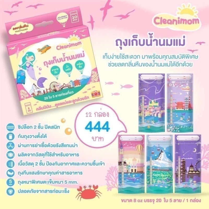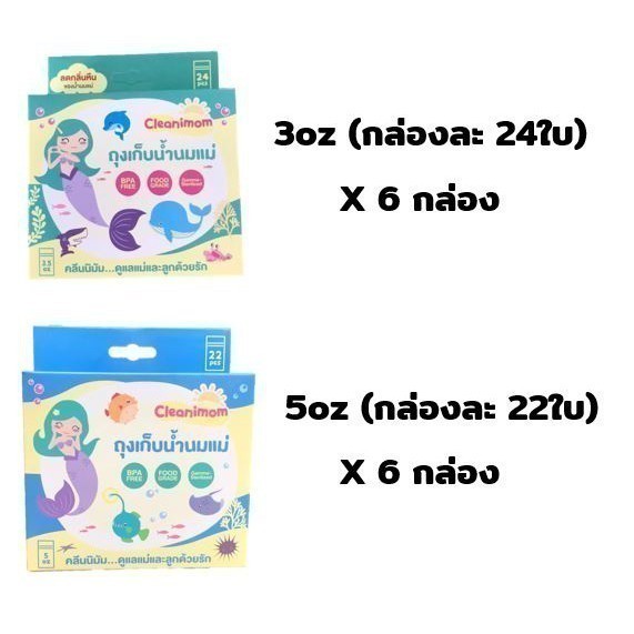 ยกลัง 12กล่อง ถุงเก็บน้ำนมแม่ Cleanimom ช่วยลดกลิ่นหืนในน้ำนมแม่ ถุงหนา ตั้งได้ ขนาด 3oz/5oz/8oz ลายเงือกน้อยสุดน่ารัก