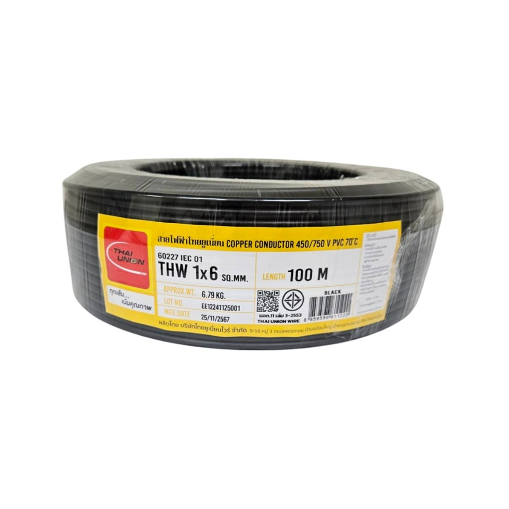 THAIUNION สายไฟ IEC01 (THW) 1x6 Sqmm. ยาว 100 เมตร สีดำ |ROL|