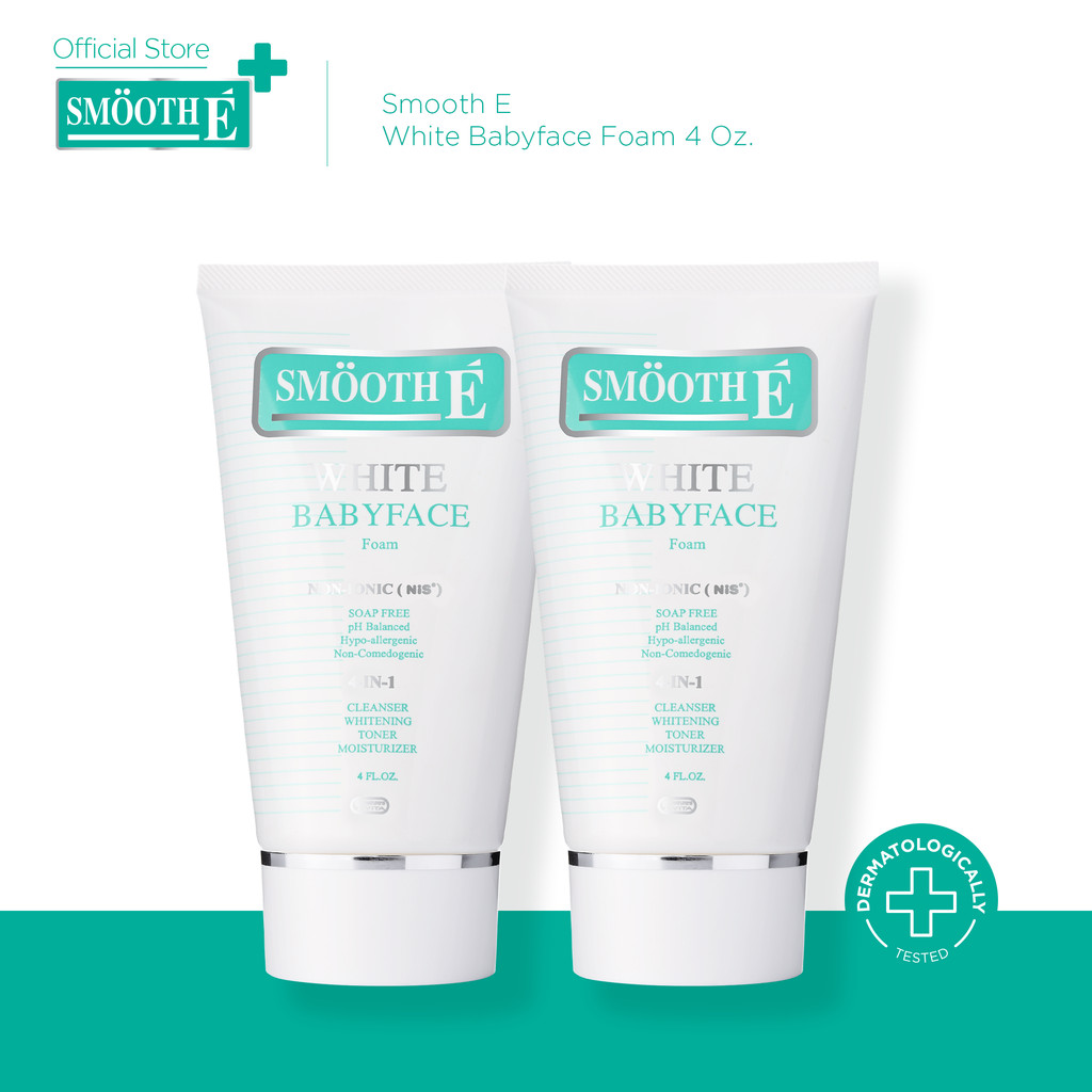 [แพ็ค 2] Smooth E White Babyface Foam 4 Oz. สมูทอี ไวท์ เบบี้เฟส โฟม pH5 Vit C&E ผิวกระจ่างใส สำหรับผิวหมอง