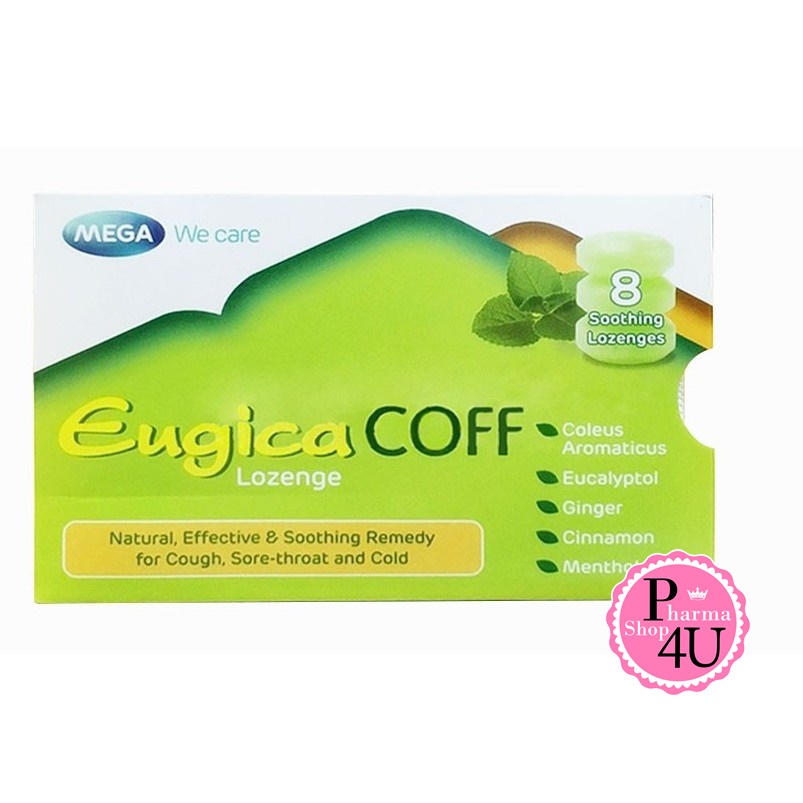 MEGA We Care Eugica Coff ยูจิก้า คอฟ ลูกอมสมุนไพร (8 เม็ด/แผง) [1 แผง] #1930