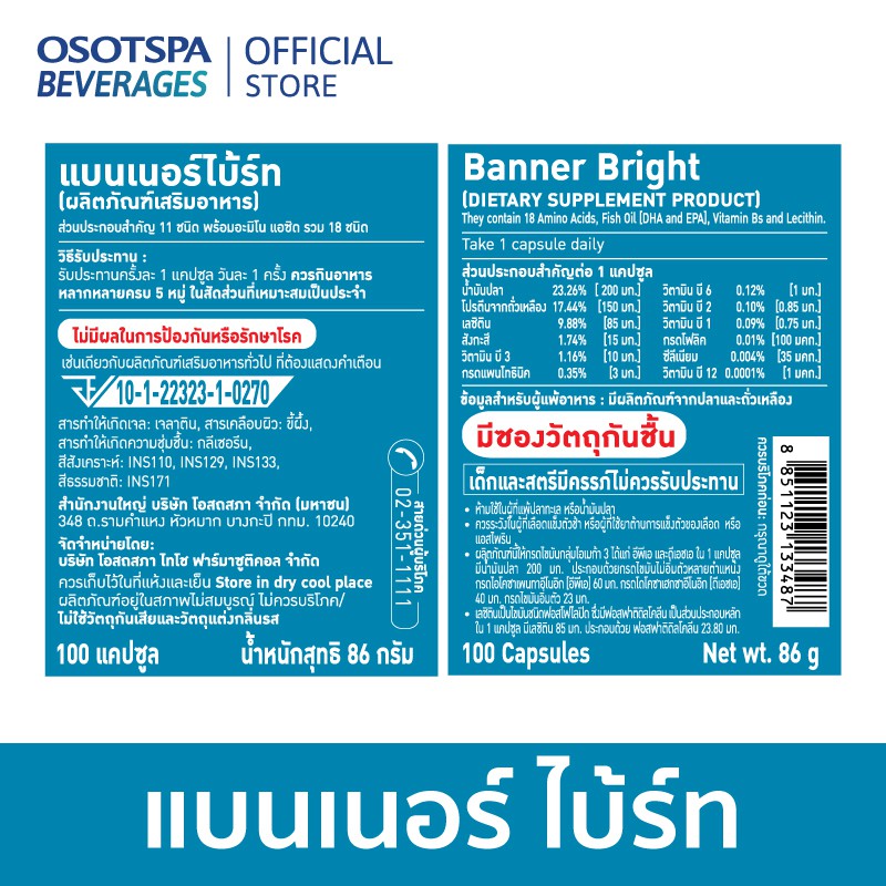 Banner Protein Fish Oil Vitamin B แบนเนอร์ โปรตีน ไฮ บี น้ำมันปลา - [น้ำเงิน][30 แคปซูล]