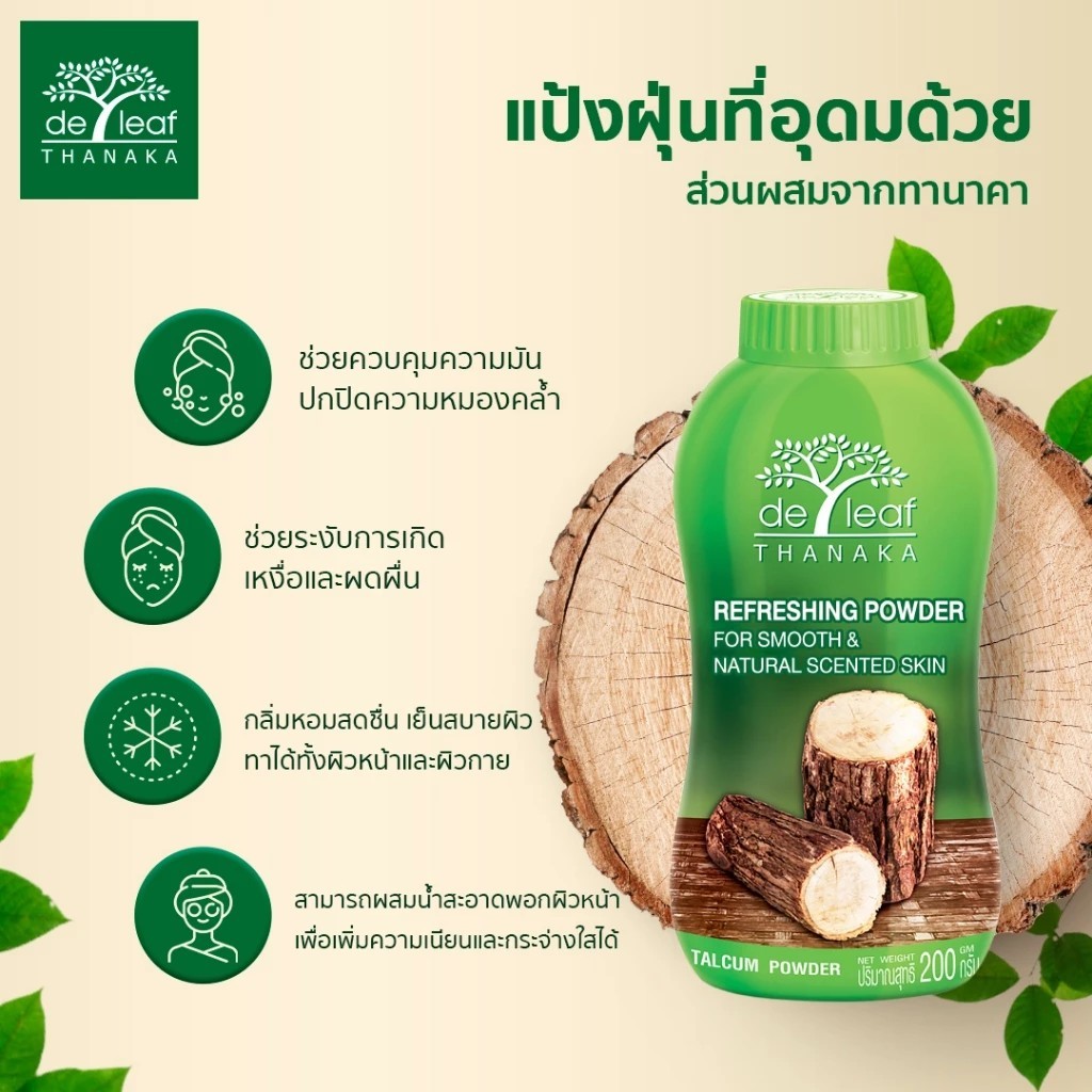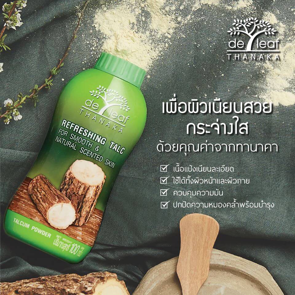 De Leaf Thanaka Refreshing Talcum Powder 80ml. เดอ ลีฟ ทานาคา พาวเดอร์ /10936