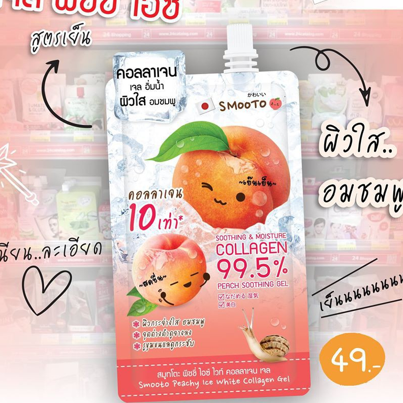 [ 1 ซอง ] สมูทโตะ พีชชี่ ไอซ์ ไวท์ คอลลาเจน เจล Smooto Peachy Ice White Collagen Gel 40 กรัม