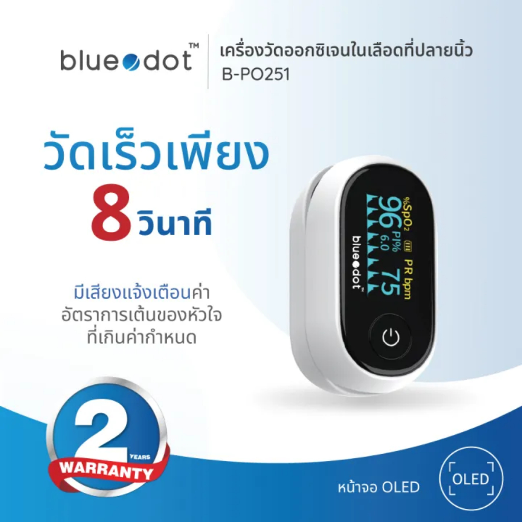[รับประกันศูนย์2ปี] Bluedot B-PO251 เครื่องวัดออกซิเจนปลายนิ้ว หน้าจอOLED แจ้งเตือนออกซิเจนสูงและต่ำ