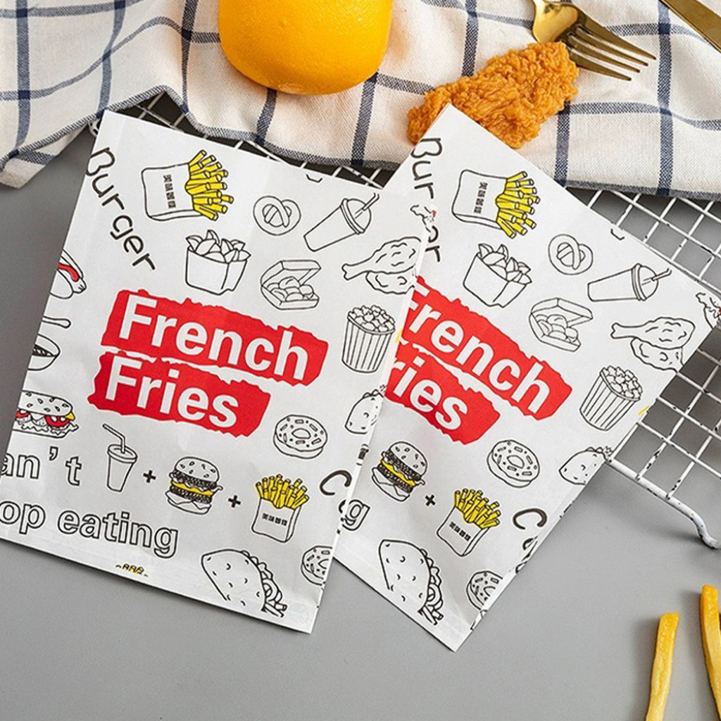 ถุงกระดาษใช้แล้วทิ้ง ถุงกระดาษใส่อาหาร เคลือบด้านในกันน้ำมัน ใส่ไก่ทอด เฟรนฟราย (แพ็ค 100 ใบ)