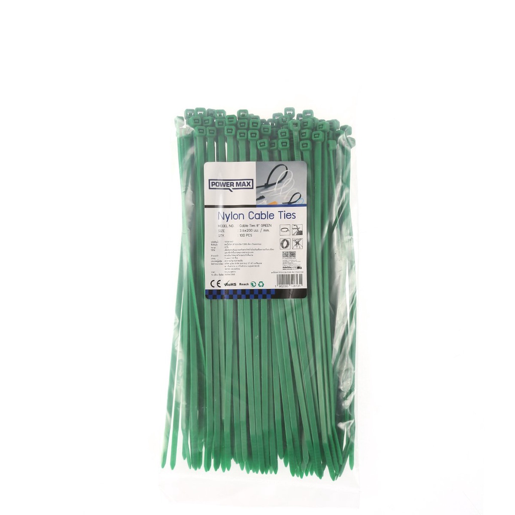POWER MAX เคเบิ้ลไทร์ 8 นิ้ว x 3.6 มม. สีเขียว (แพ็ค 100 ชิ้น) |PAC|