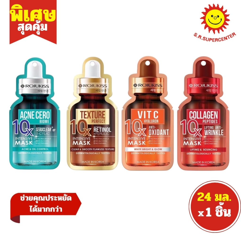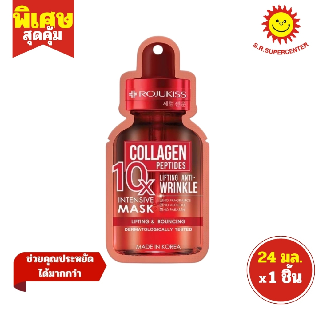 [ 1ชิ้น ] Rojukiss โรจูคิส คอลลาเจน 10x มาส์กหน้า ขนาด 24 มล. (1ชิ้น) คละสูตร