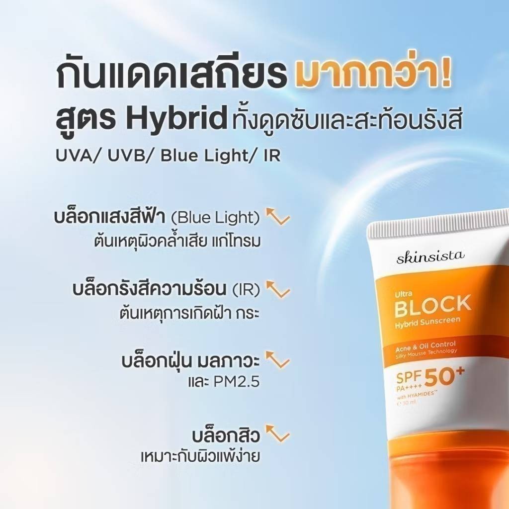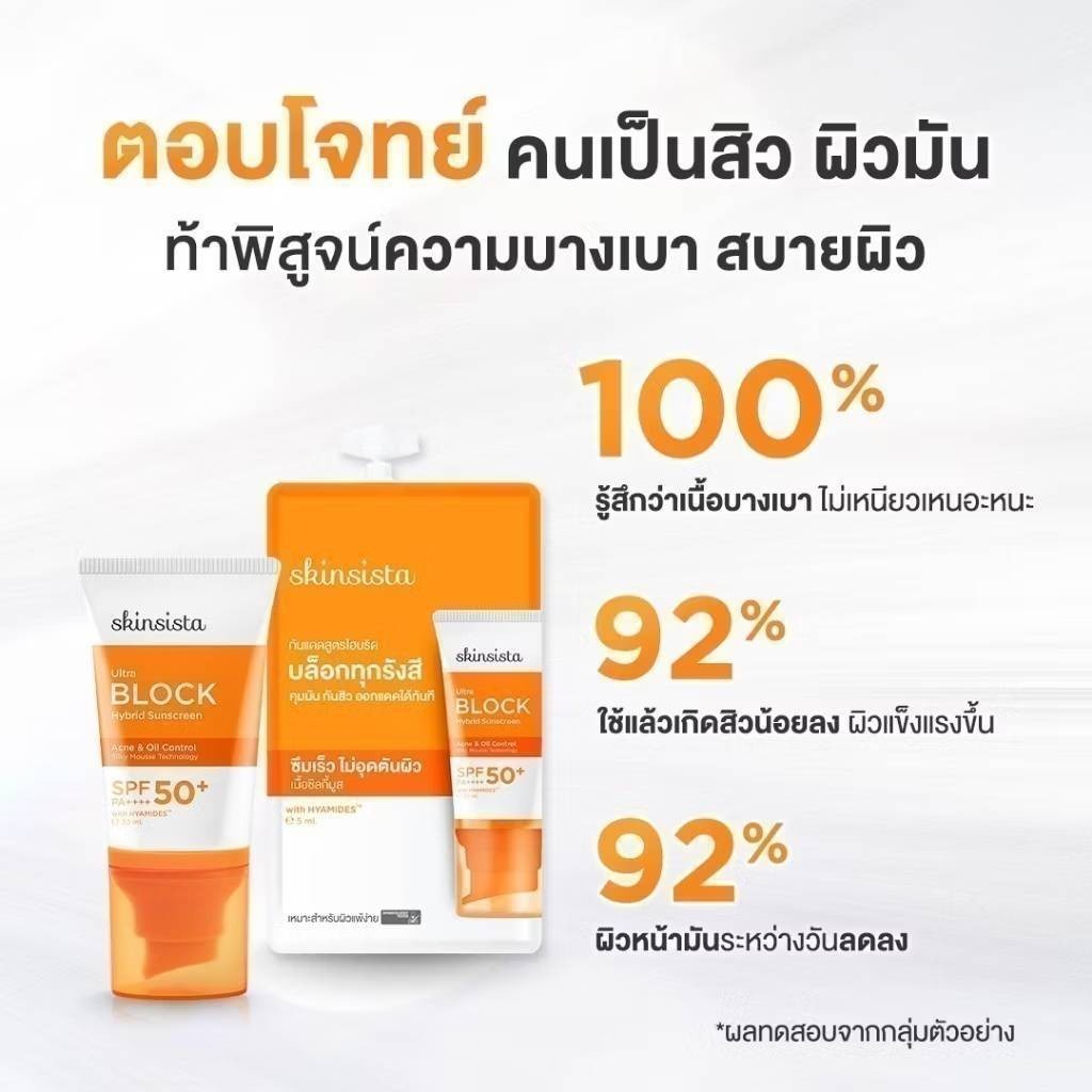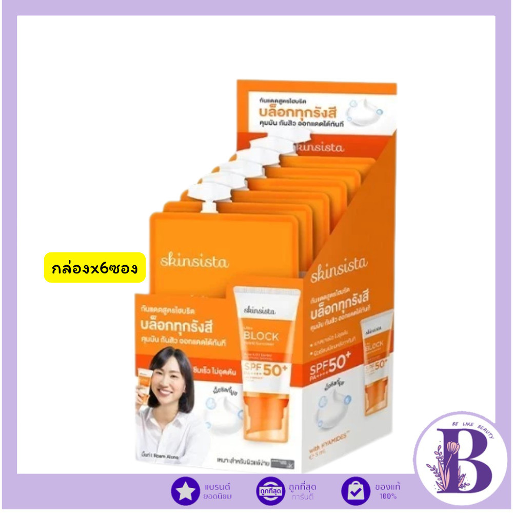 🔥แท้/ดีลสุดคุ้ม/ไลฟ์ทุกวัน🔥(กล่องx6ซอง) SKINSISTA ULTRA BLOCK HYBRID SUNSCREEN SPF50+ PA++++ (5g) ครีมกันแดด