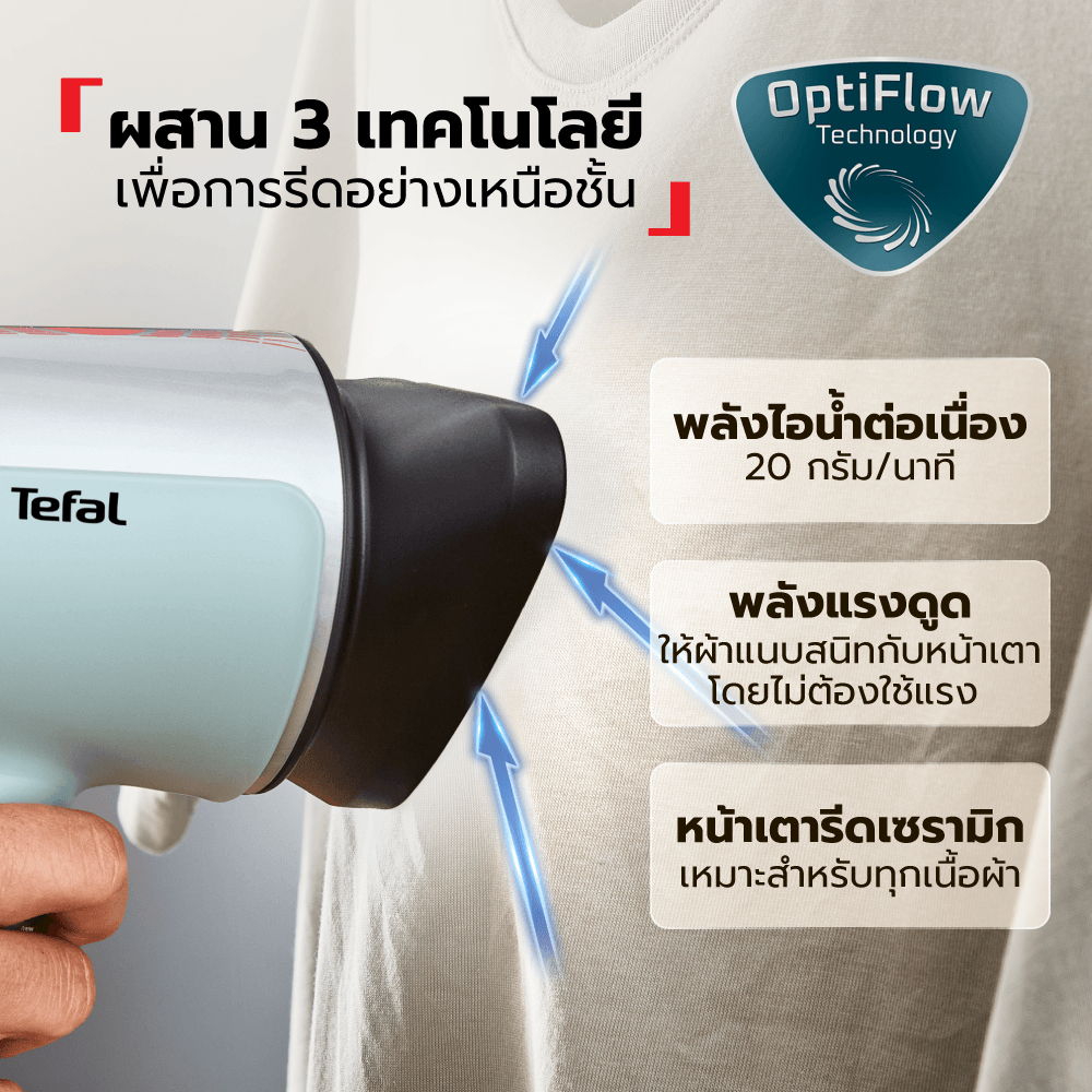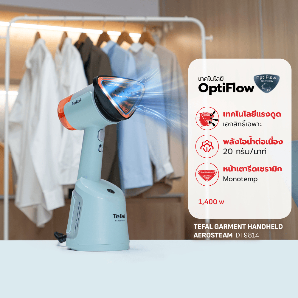 Tefal เครื่องรีดผ้าไอน้ำสุญญากาศ Garment Handheld AeroSteam รุ่น DT9814F0 สี Eucalyptus