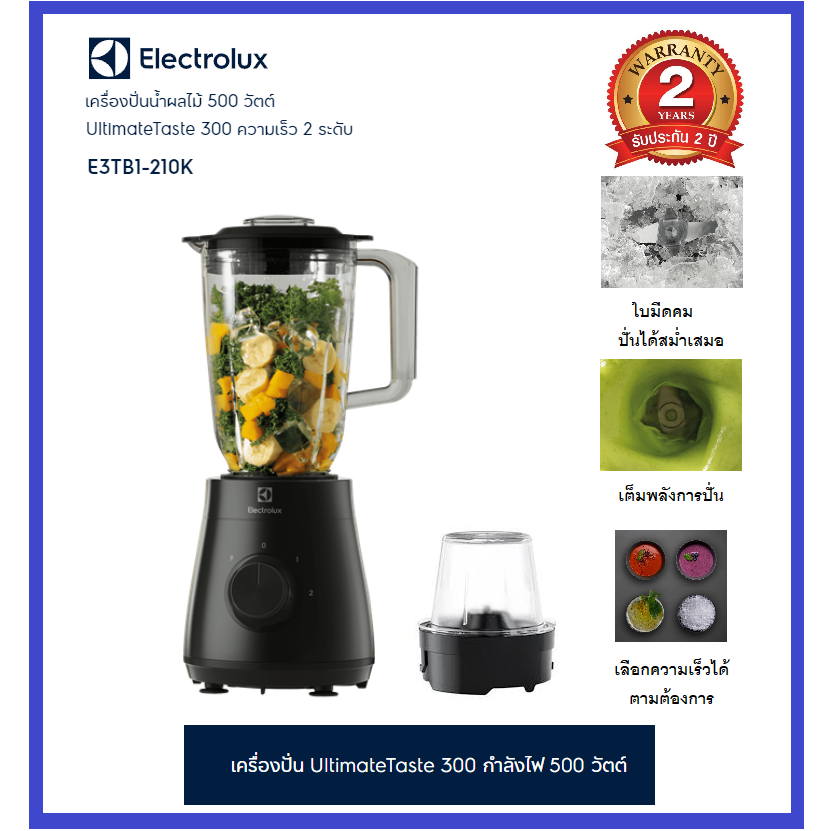 Electrolux เครื่องปั่น UltimateTaste 300 กำลังไฟ 1.5 ลิตร 500 วัตต์ พร้อมโถบดเล็ก รุ่น E3TB1-210K