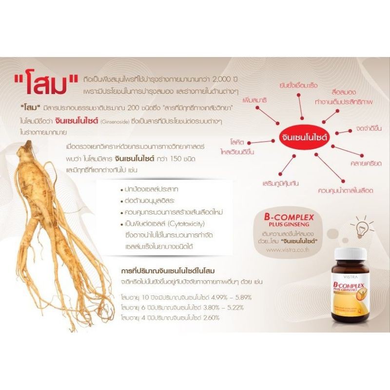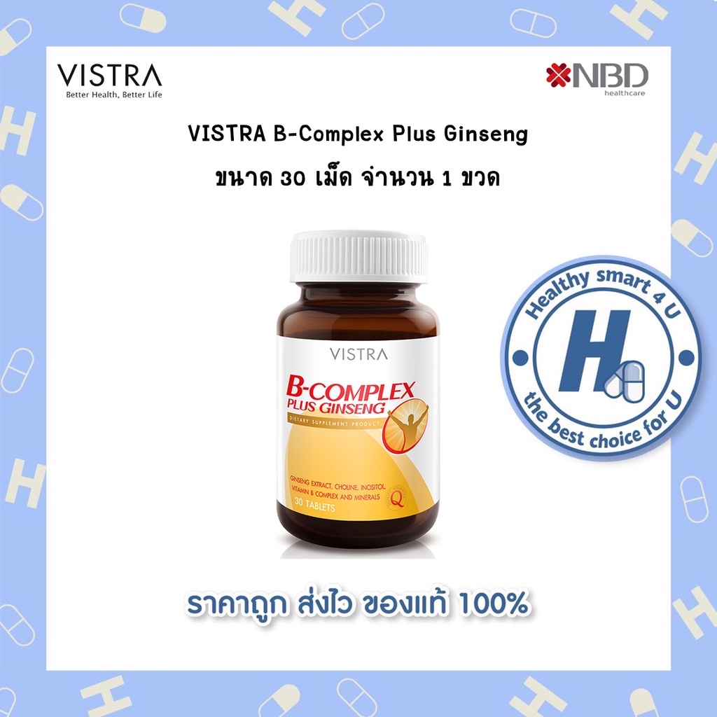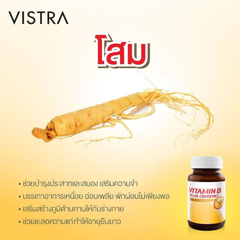 🔥lot ใหม่ พร้อมส่ง🔥Vistra B Complex Plus Ginseng วิทร้าวิตามินบีผสมโสม (30 เม็ด)