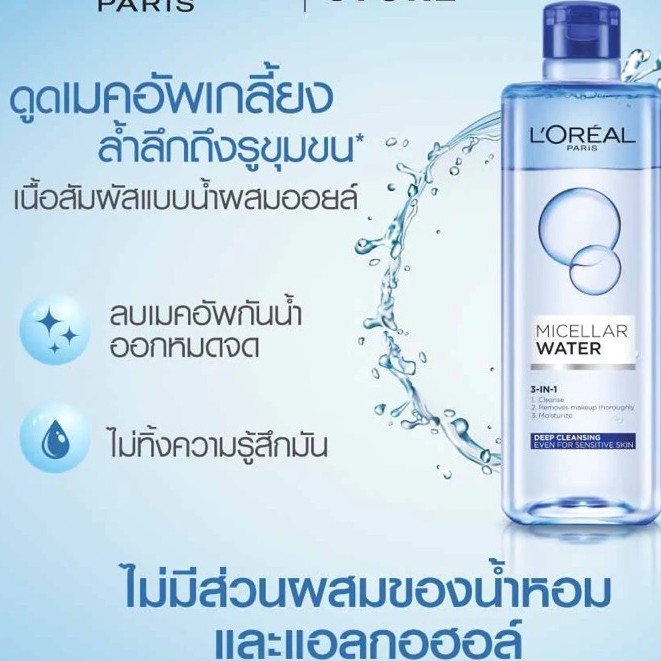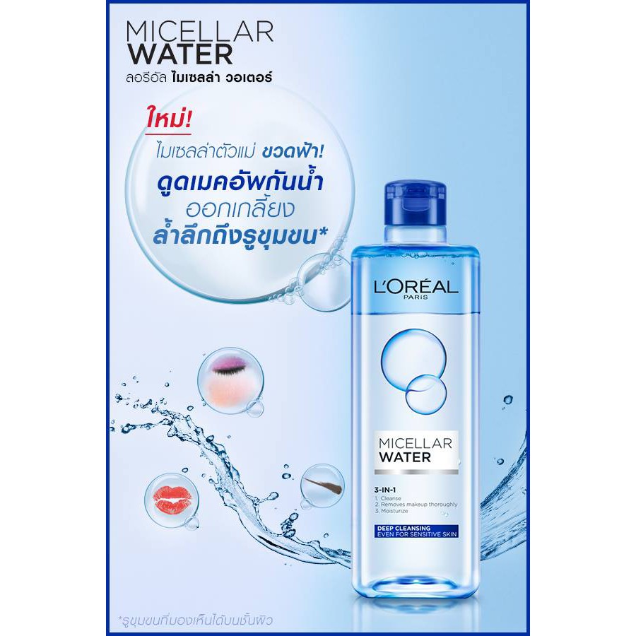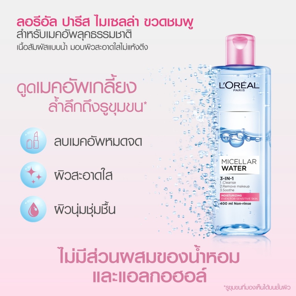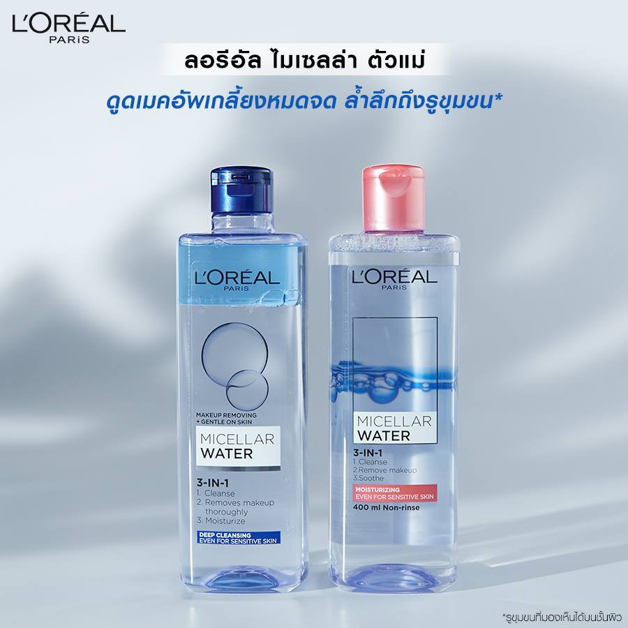 ลอรีอัล ไมเซลล่า วอเตอร์ ล้างเครื่องสำอาง 400 มล. L'OREAL Micellar Water 3 in 1
