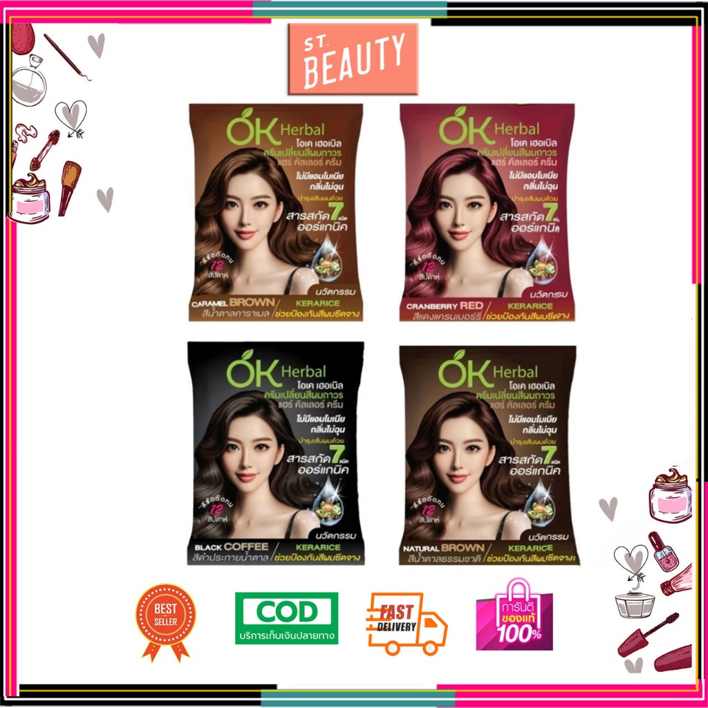(1ซอง)OK Herbal โอเคเฮอร์เบิล ครีมเปลี่ยนสีผม มี4สี