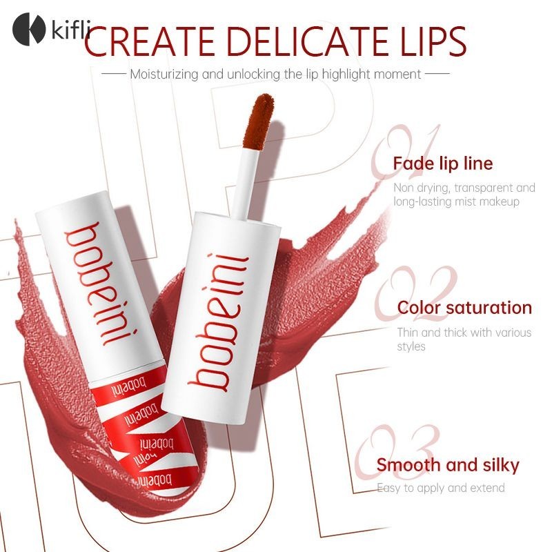 【kifli1 】Bobeini ลิปโคลน ลิปสติก เนื้อแมตต์กํามะหยี่ กันน้ำ ติดทน ให้ความชุ่มชื้น ใช้ได้ทั้งปากและแก้ม ติดทนยาวนาน-KI
