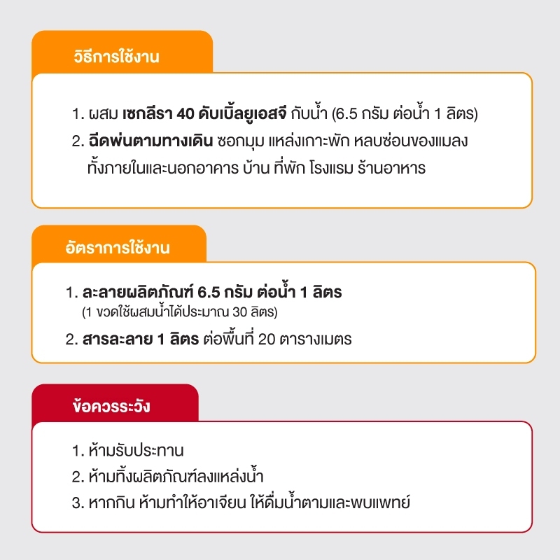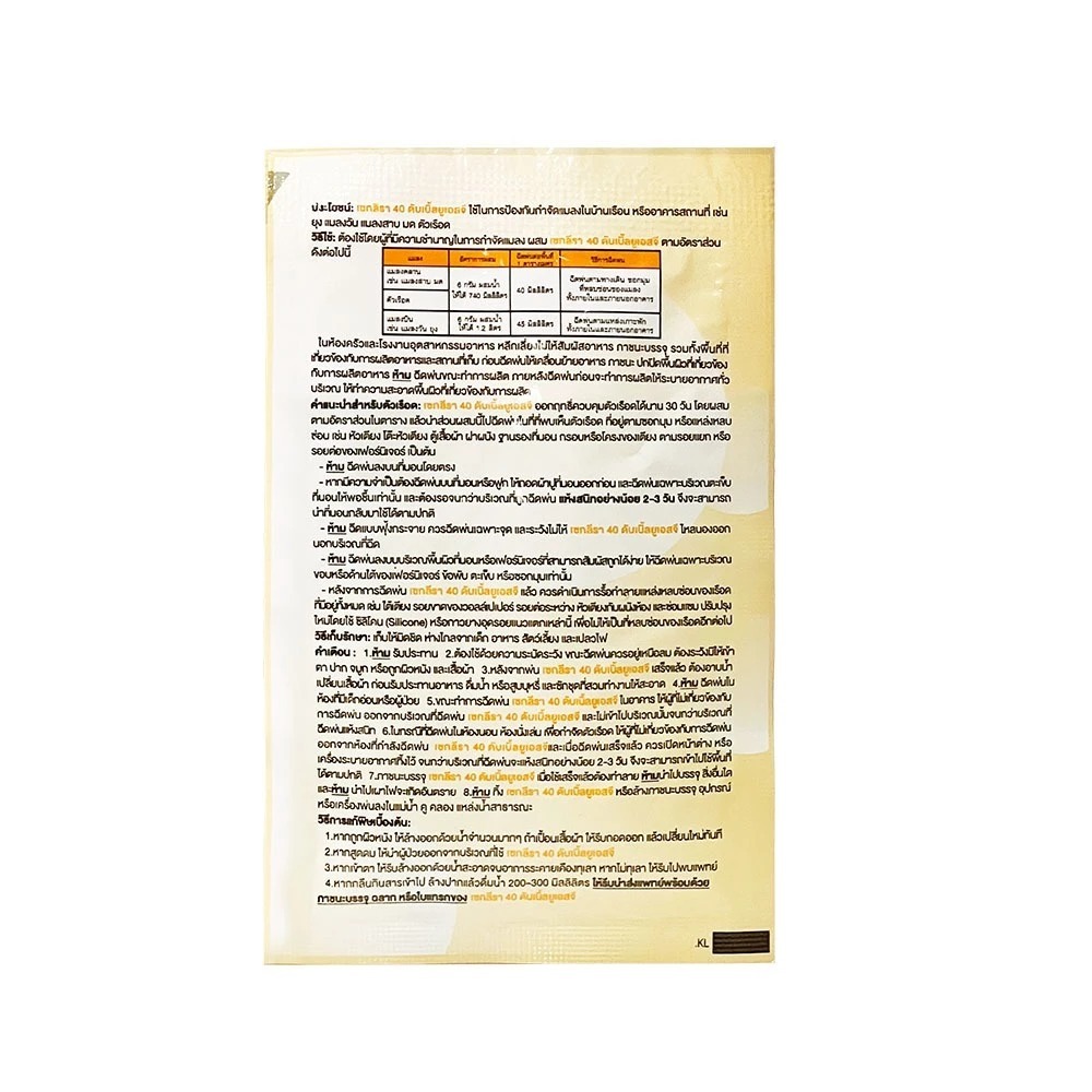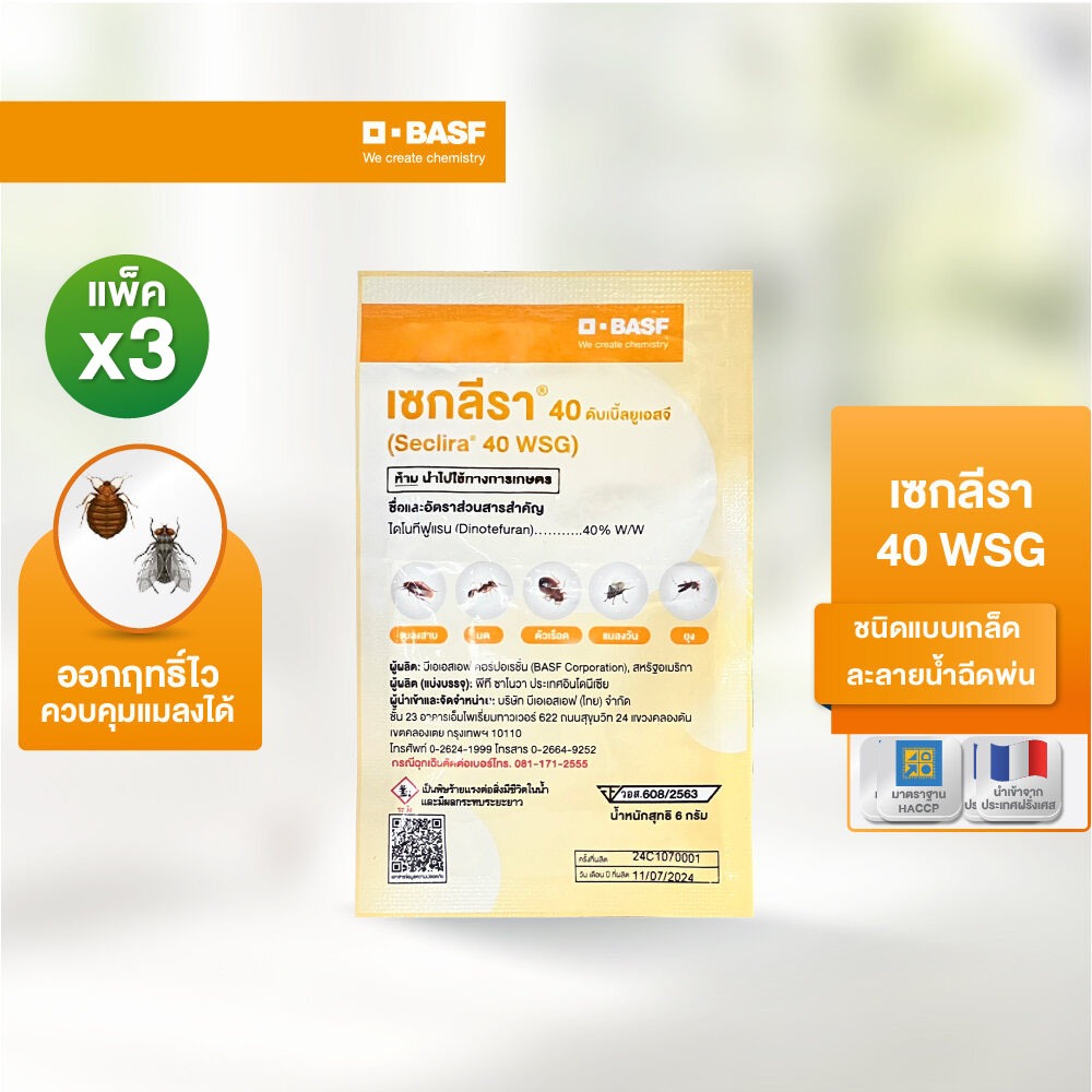[แพ็ค 3 ชิ้น] SECLIRA® 40 WSG เซกลีรา กำจัดมด/ ยุง/ แมลงวัน ชนิดผง ขนาด 6 กรัม