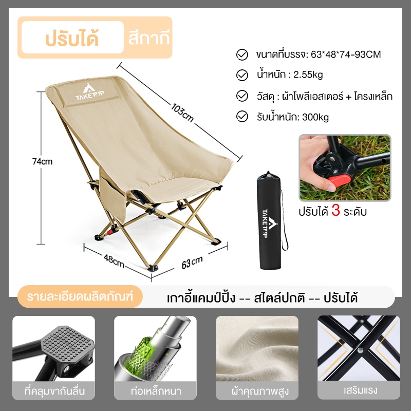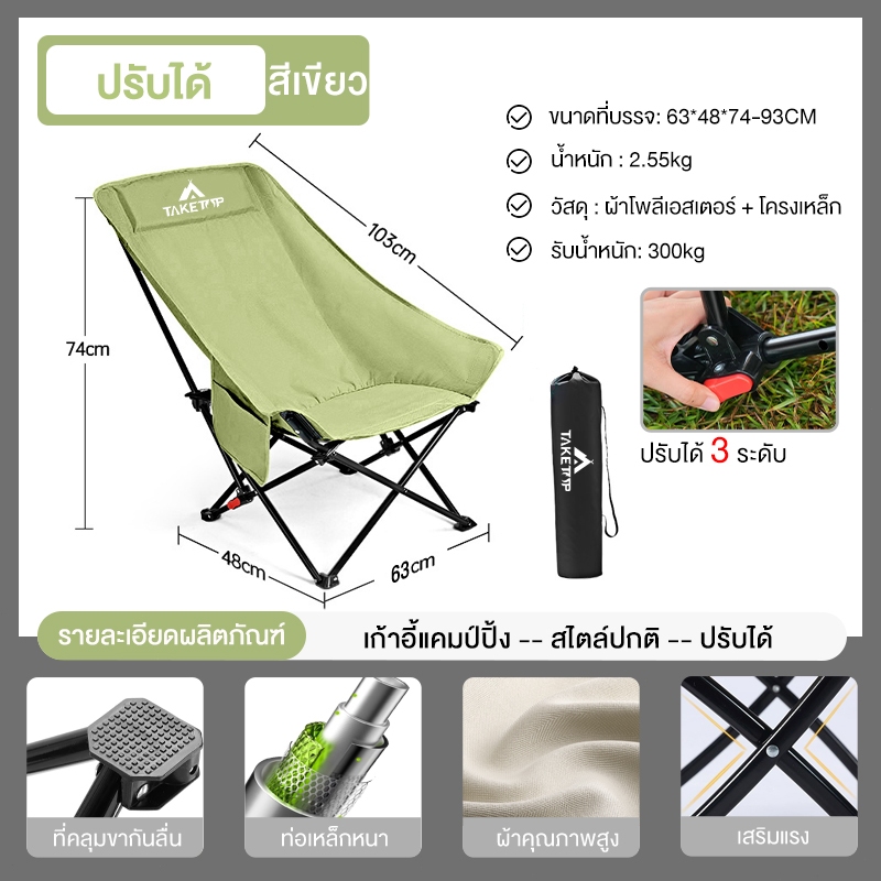 เก้าอี้แคมป์ปิ้ง เก้าอี้สนาม เก้าอี้พับ อุปกรณ์แคมป์ปิ้ง สนามเดินป่า พลาสติกเสริมแรง 300กก น้ำหนักเบา หน้าเก้าอี้กว้าง