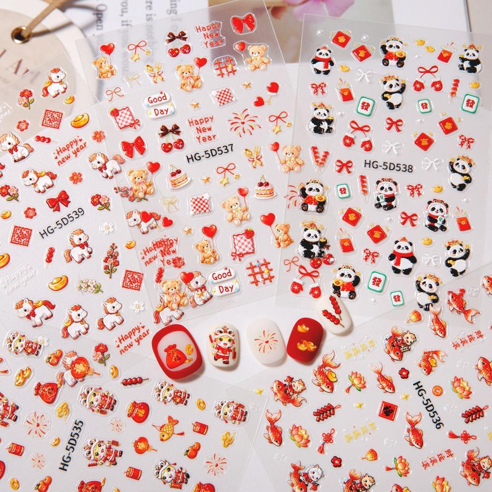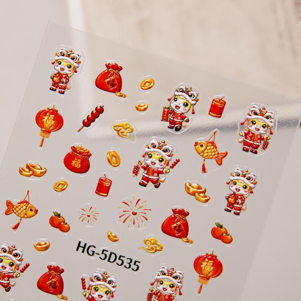 สติ๊กเกอร์ติดเล็บ ปีใหม่ สิงโต เต้นรํา สติ๊กเกอร์ สวัสดีปีใหม่ สติ๊กเกอร์ติดเล็บ ตกแต่ง ศิลปะ ฉ7