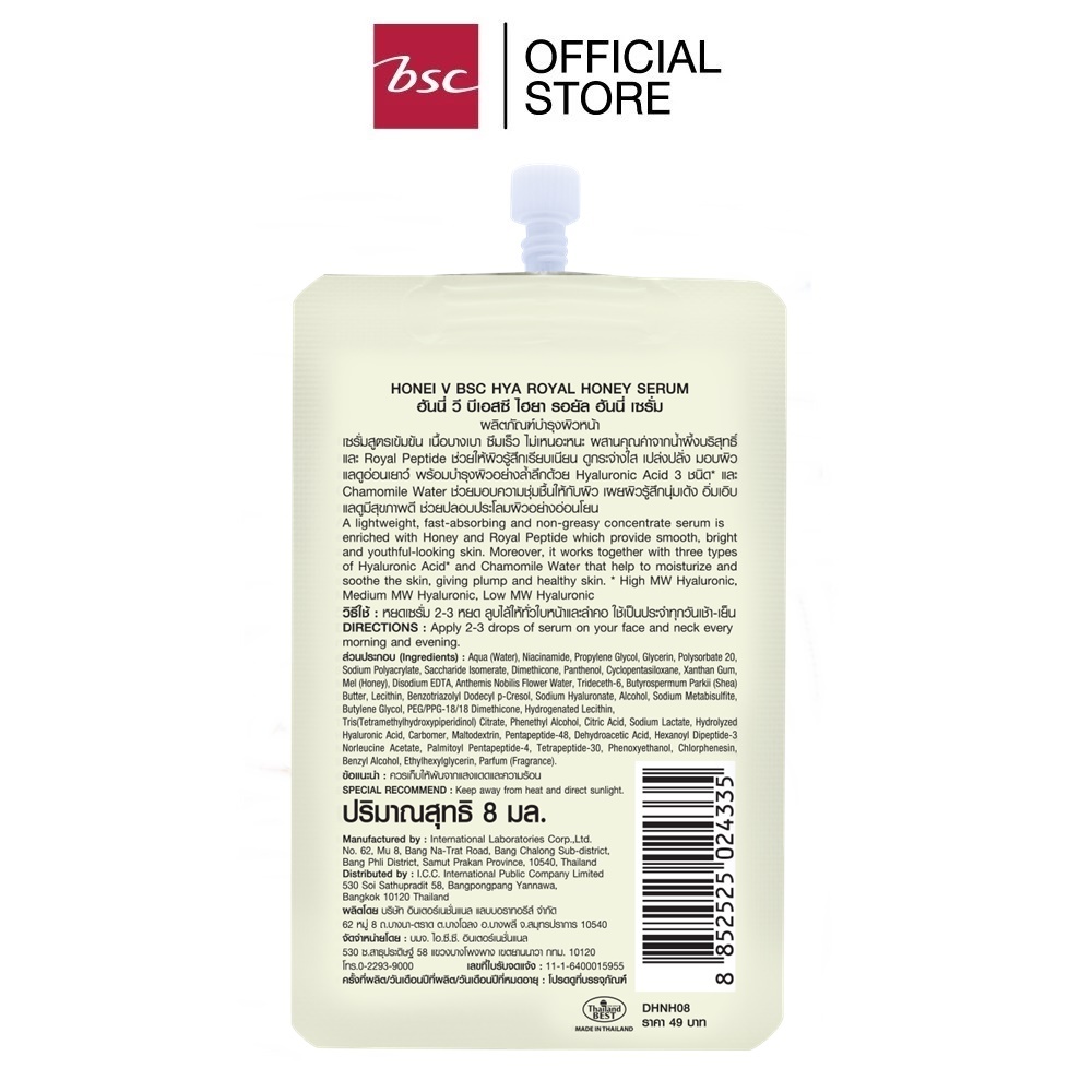 HONEI V BSC HYA ROYAL HONEY SERUM เซรั่มน้ำผึ้ง&ไฮยาสูตรเข้มข้น เนื้อบางเบา ซึมเร็ว ไม่เหนอะหนะ 8 มล.