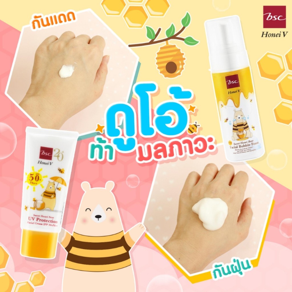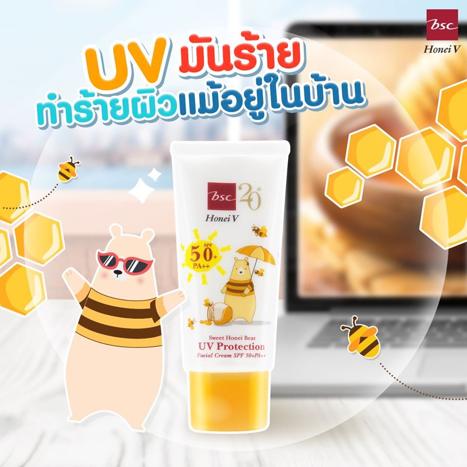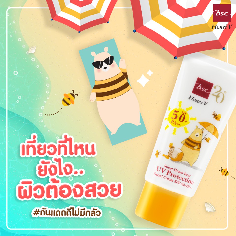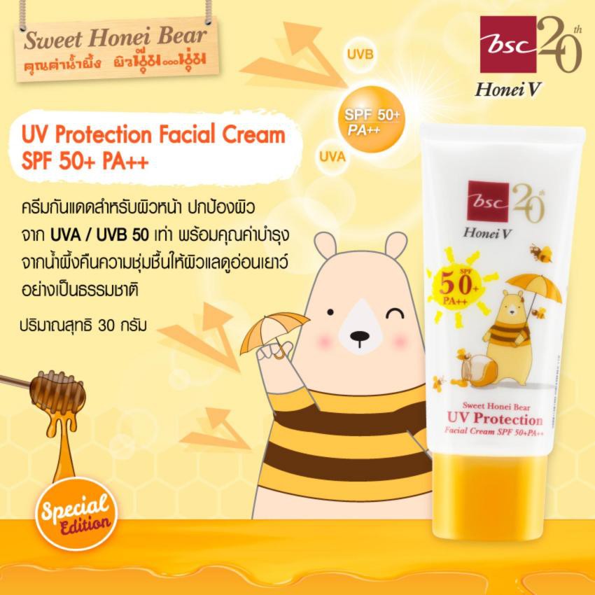 HONEI V BSC SWEET HONEI BEAR UV PROTECTION FACIAL CREAM SPF 50+ PA++ ปกป้องผิวหน้าจากแสงแดดและรังสี UV ด้วย