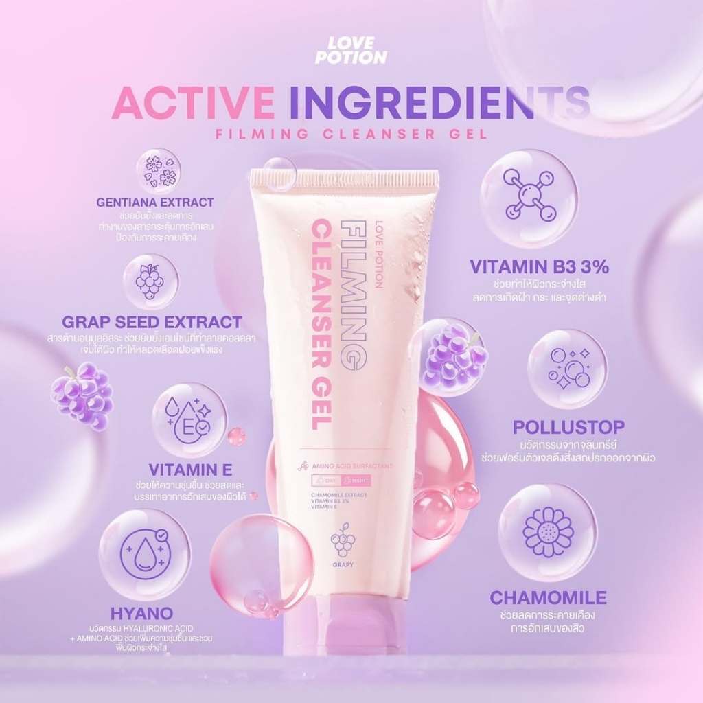 LOVE POTION - Filming Cleanser Gel Grapy (75ml.) เลิฟ โพชั่น ฟิล์มมิ่ง คลีนเซอร์ เจล เกรปปี้ โฟมล้างหน้า