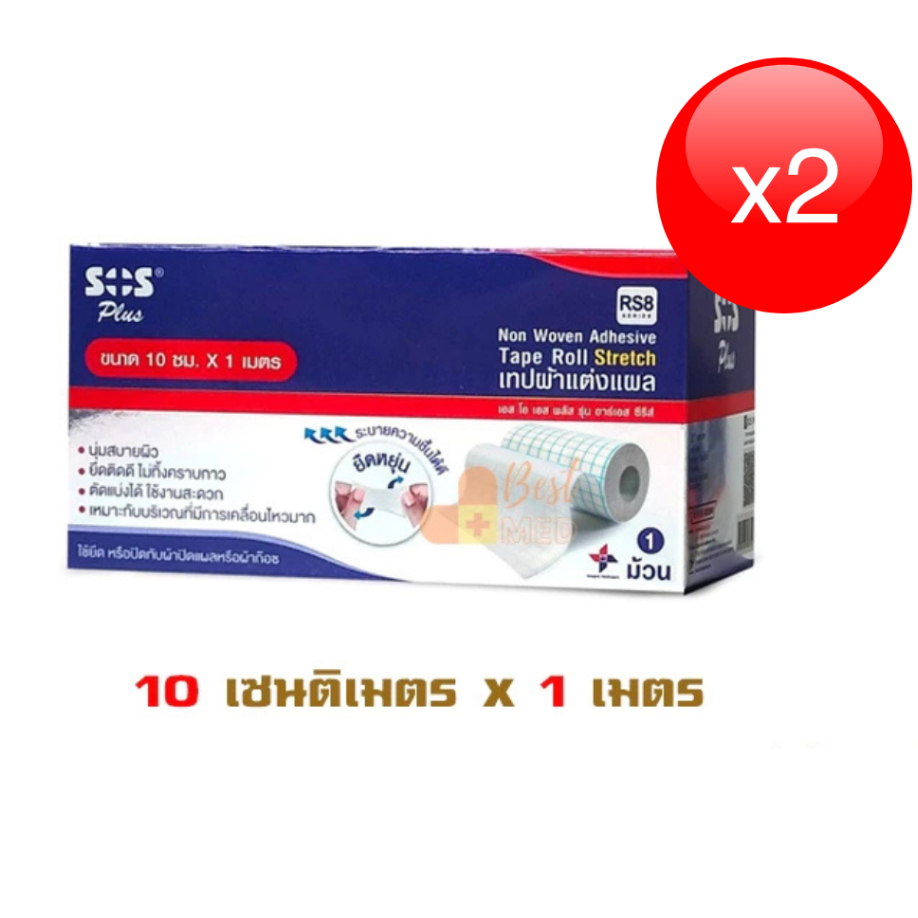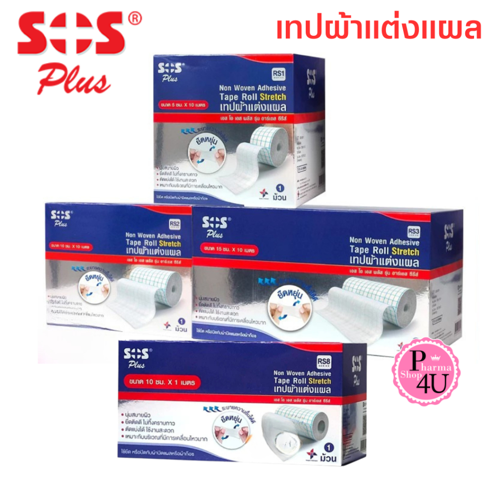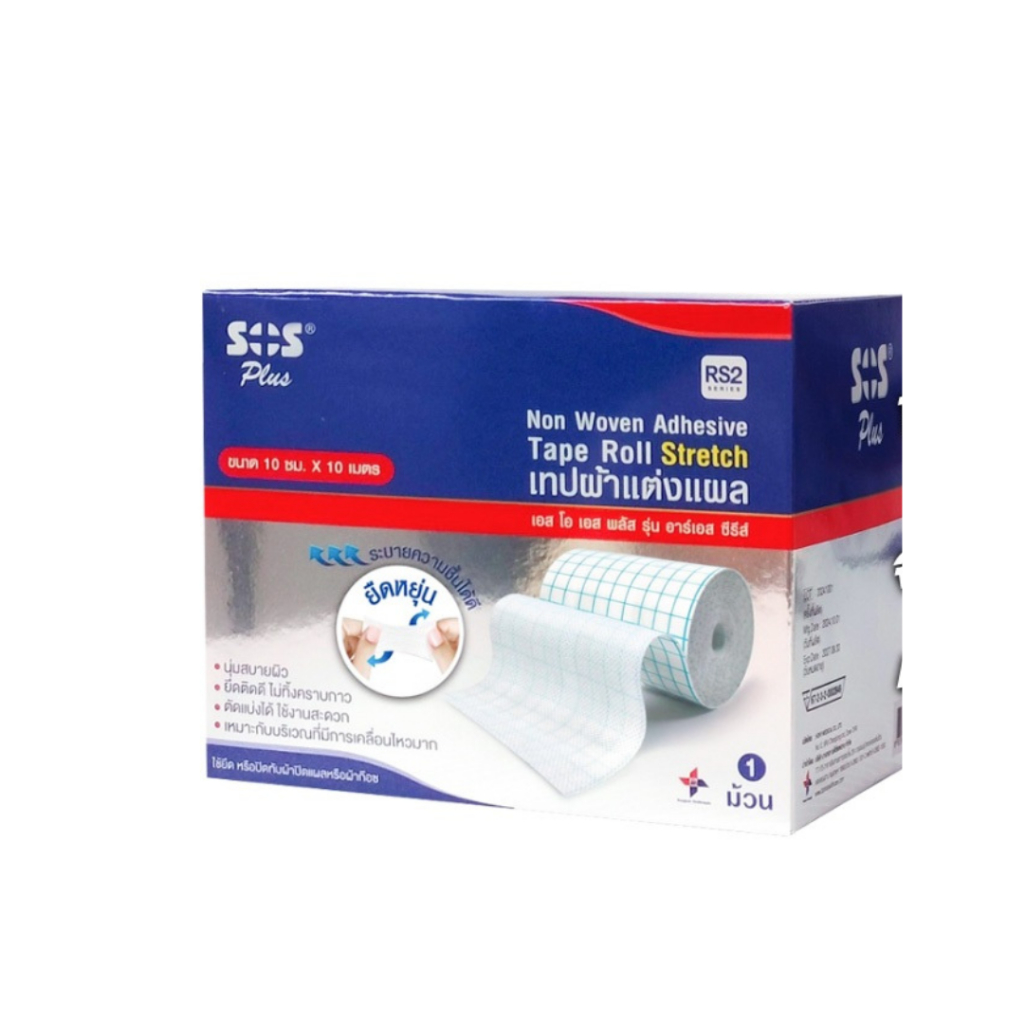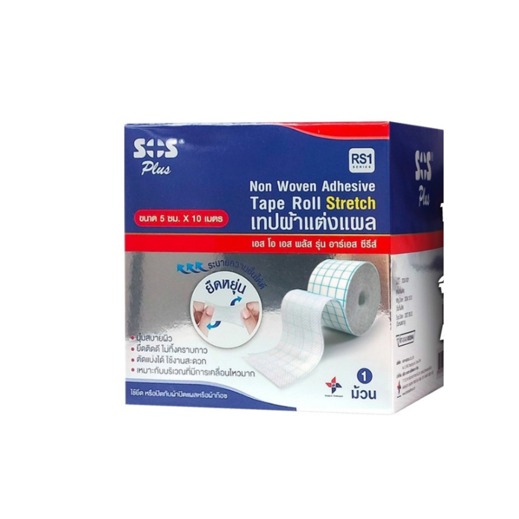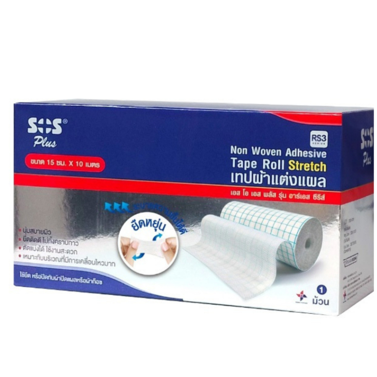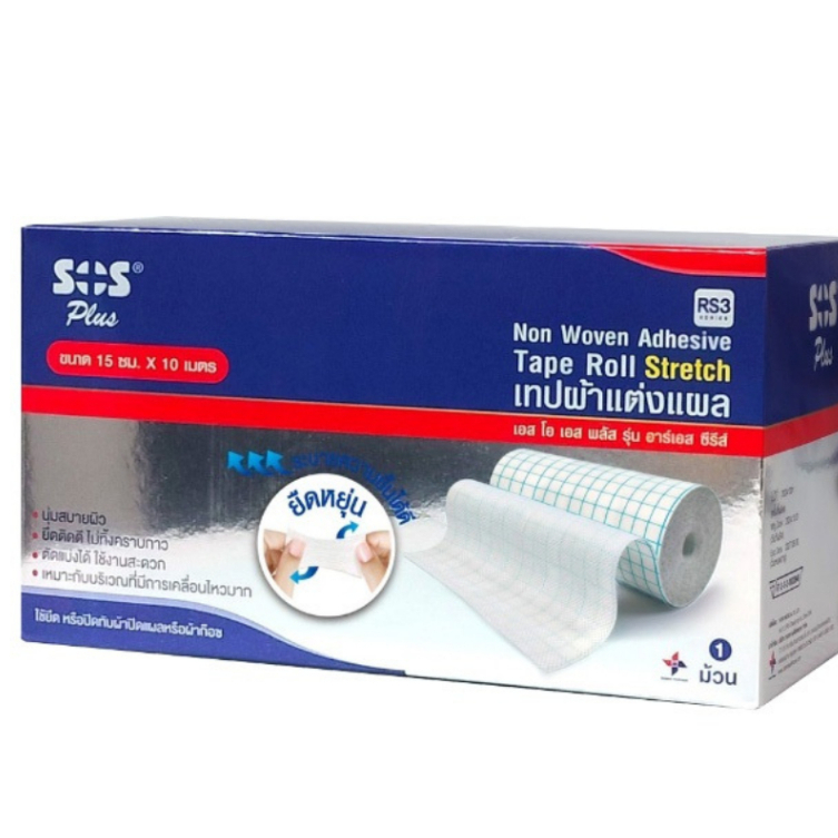 SOS plus stretch เทปผ้าแต่งแผล ระบายความชื้น ยืดหยุ่น เทปผ้าปิดแผล RS1, RS2, RS3 และ RS8 (1 ม้วน)