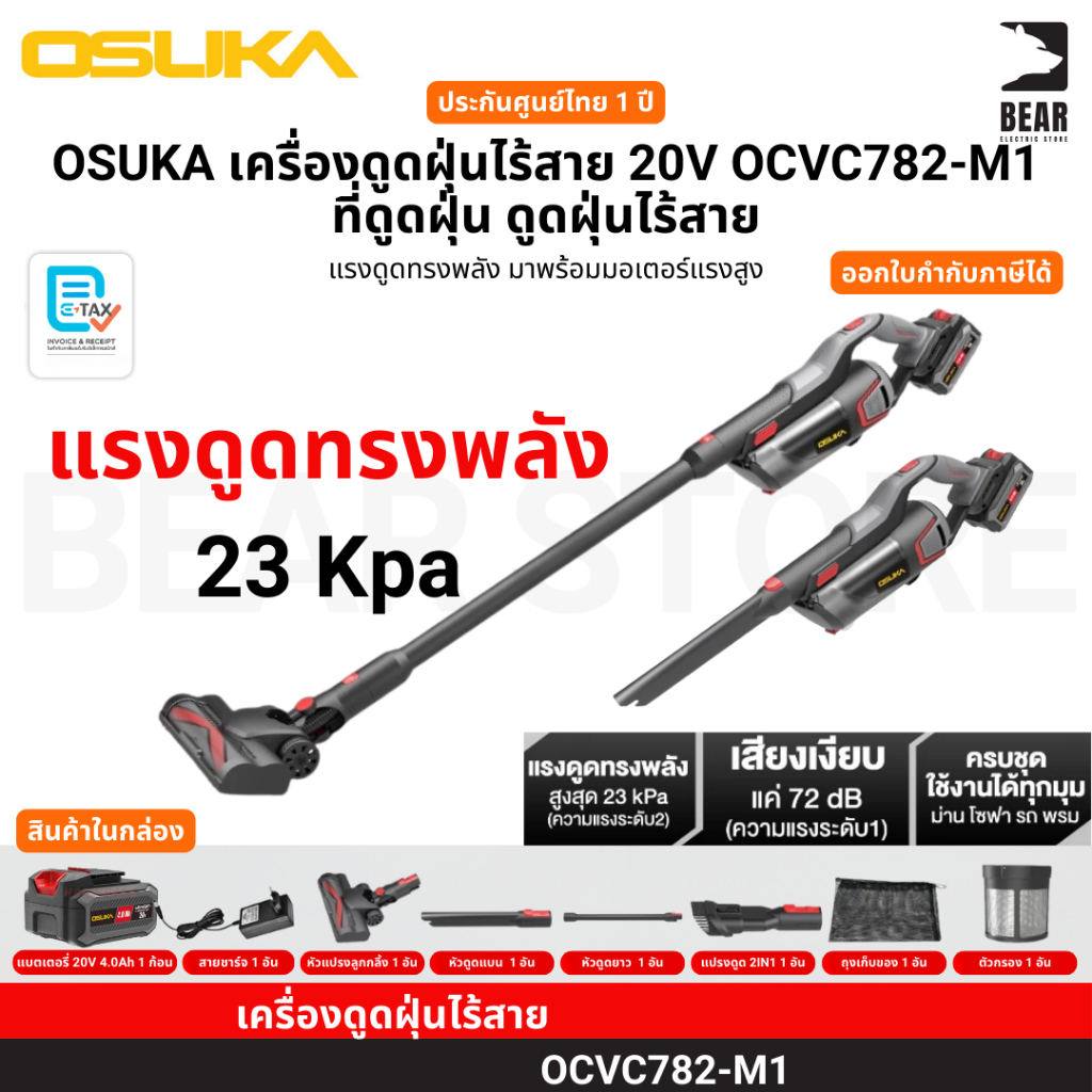 OSUKA เครื่องดูดฝุ่นไร้สาย 20V OCVC782-M1 แรงดูดสูง น้ำหนักเบา จับถนัด อเนกประสงค์ รับประกัน 1 ปี